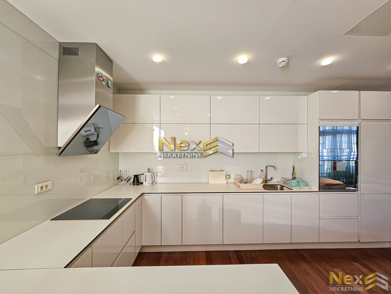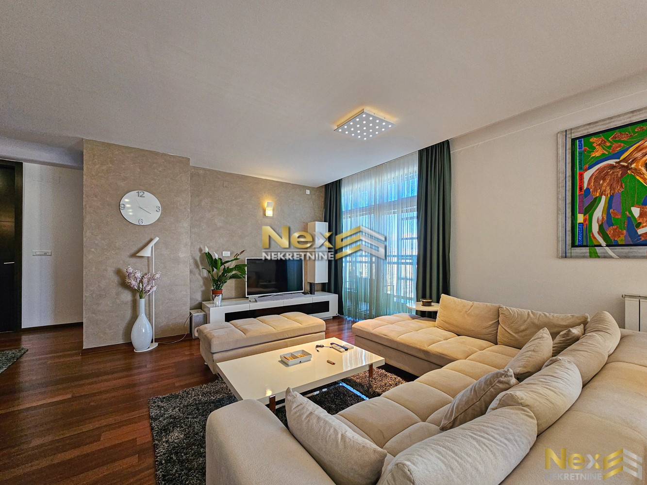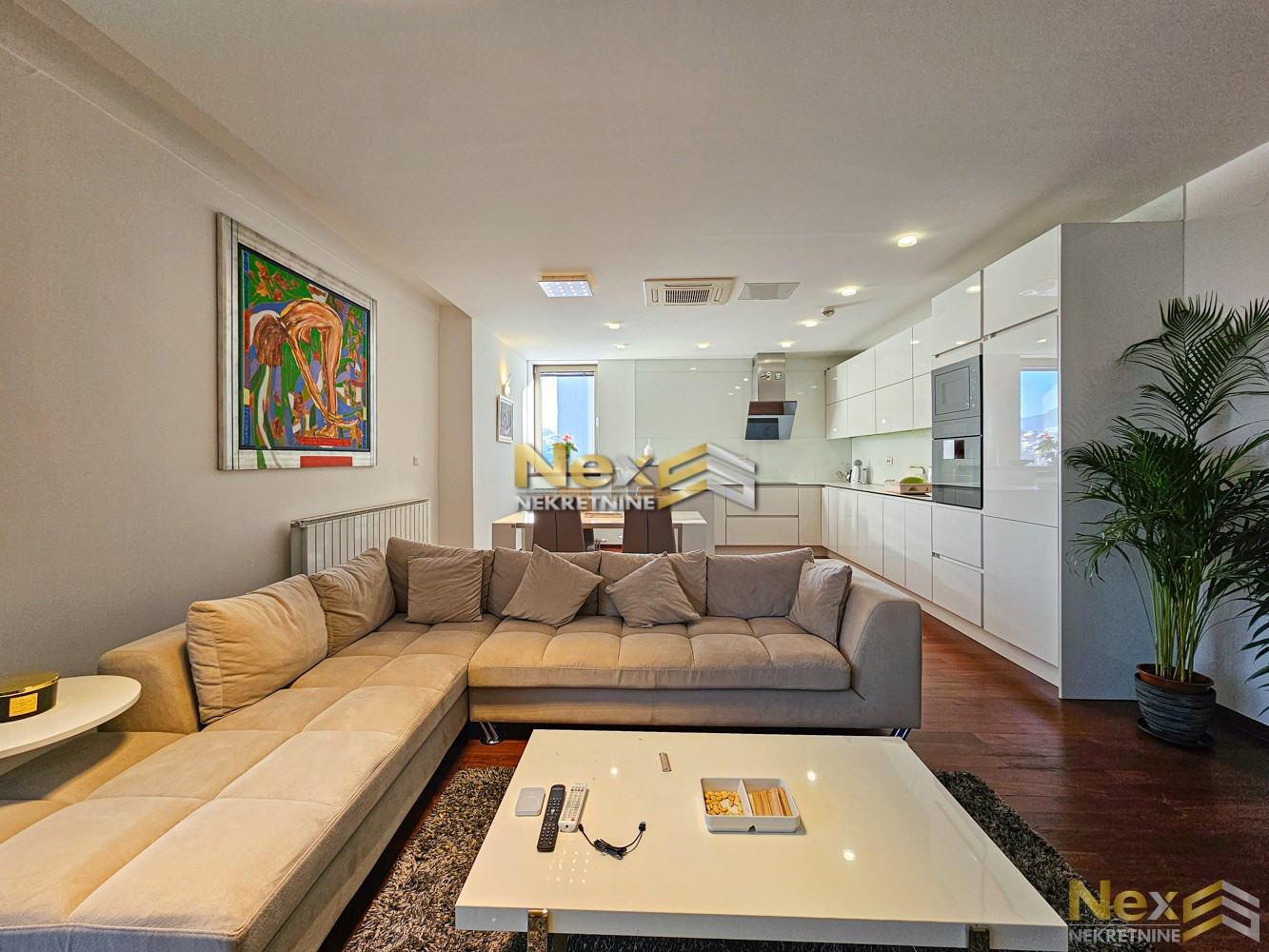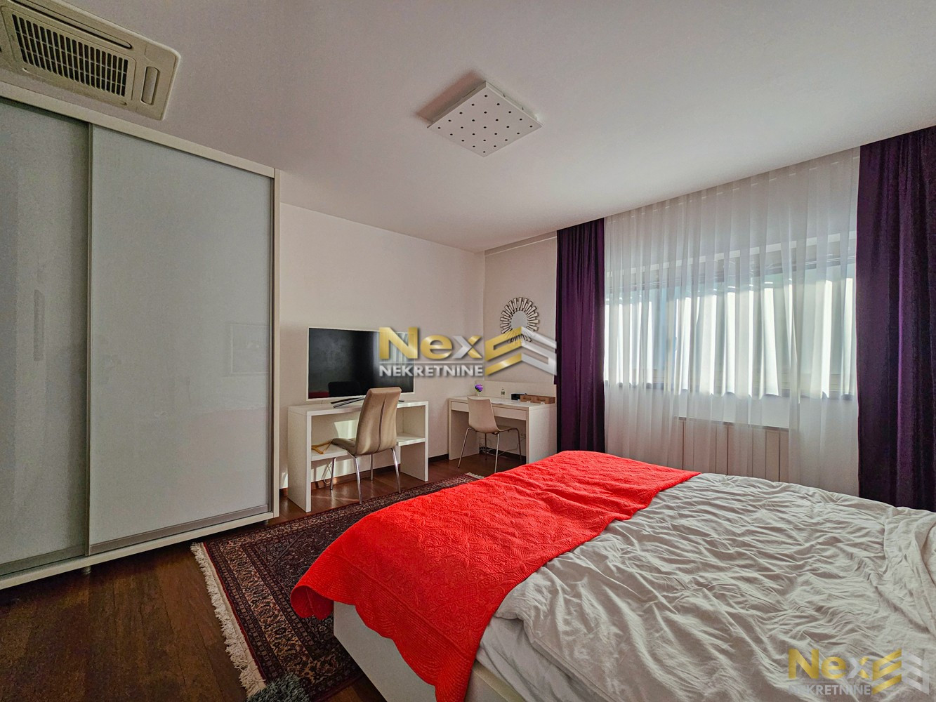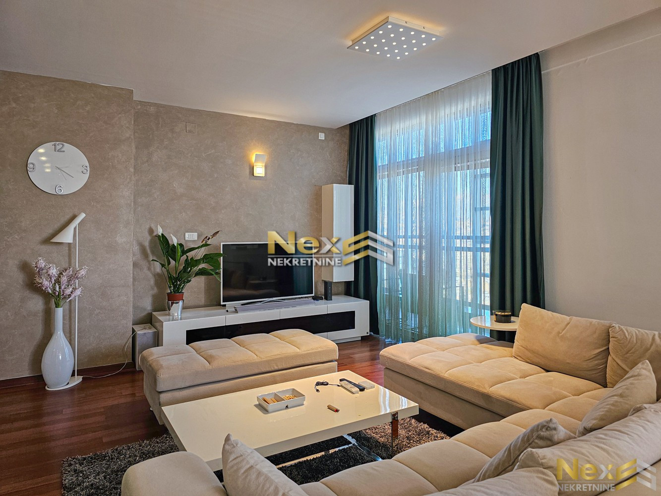 Iznajmljujemo kompletno namješten, trosoban stan površine 100 m2, pozicioniran na petnaestom spratu prestižnog Bosmal City Centra.