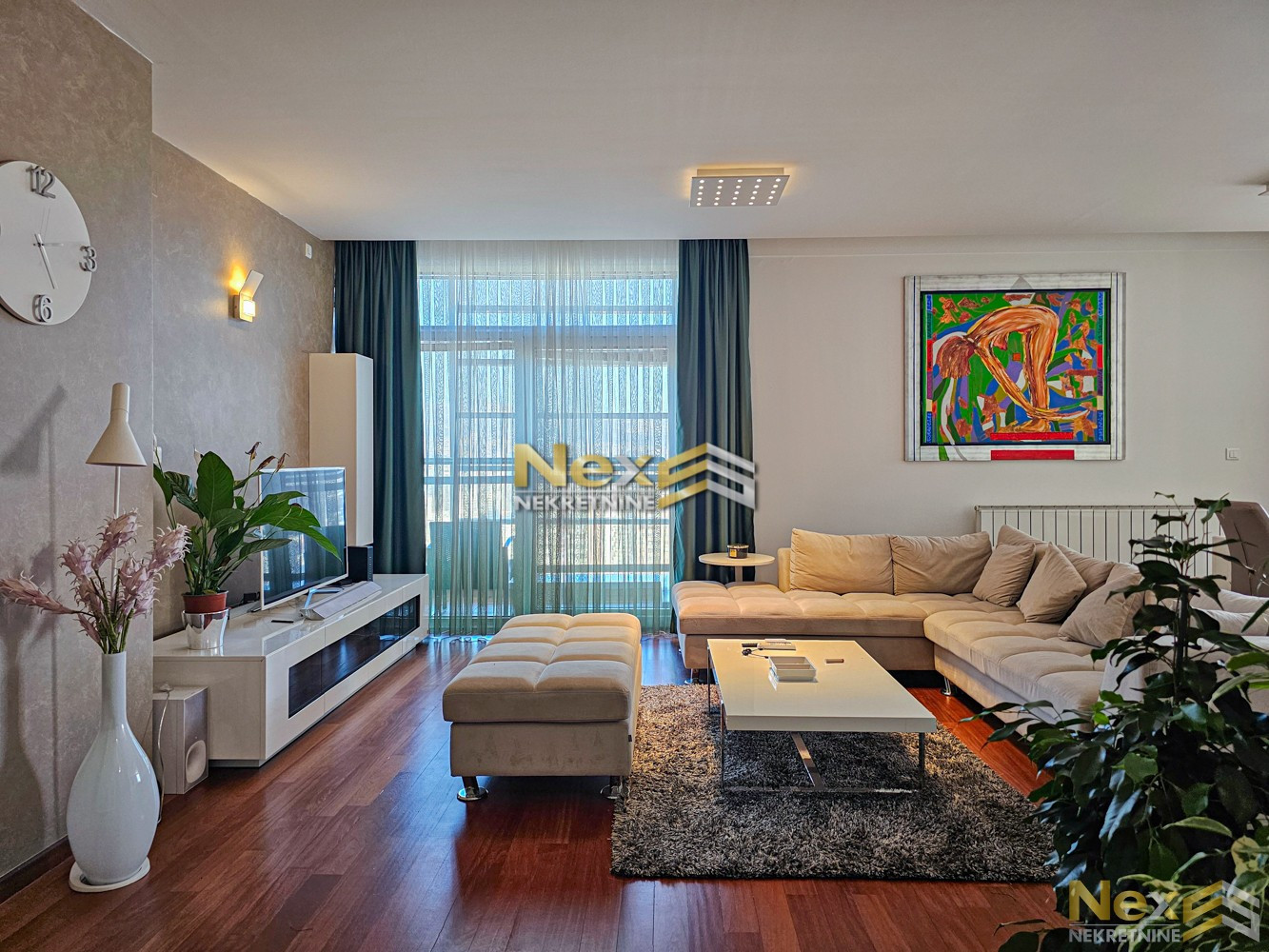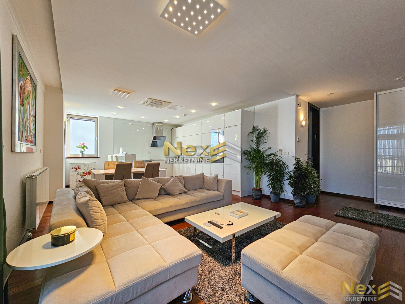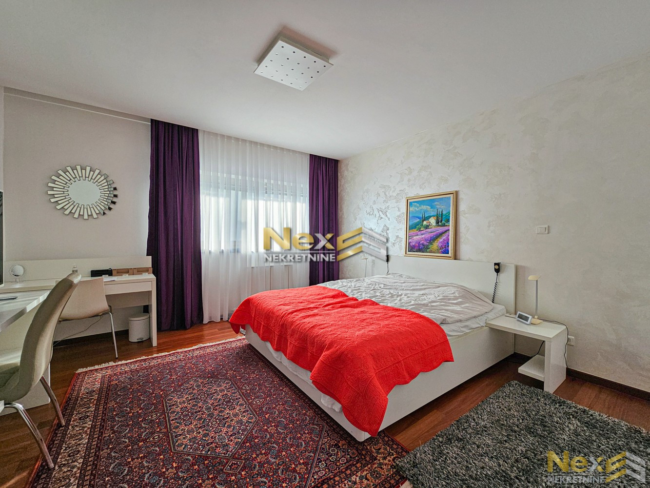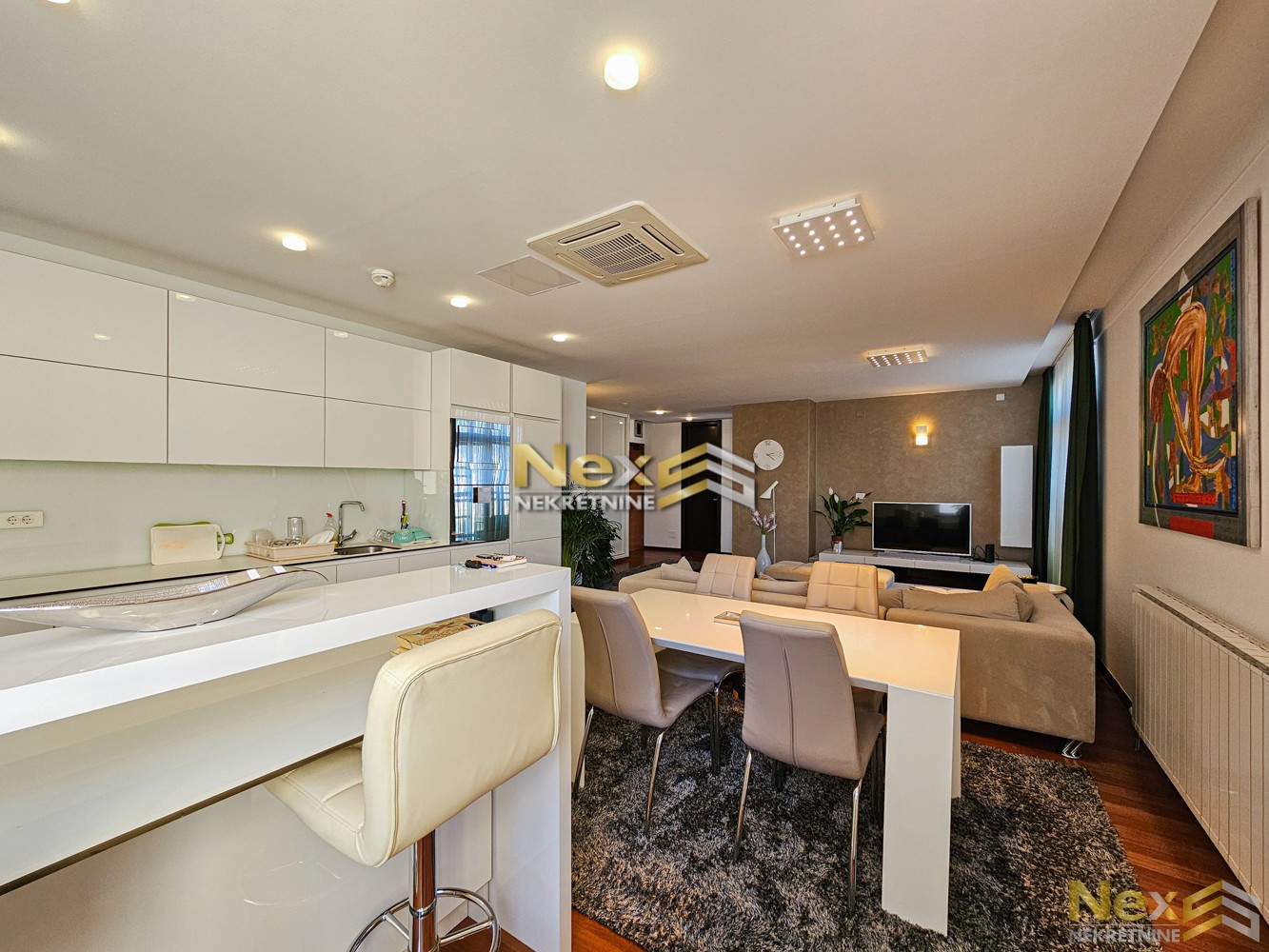 Iznajmljujemo kompletno namješten, trosoban stan površine 100 m2, pozicioniran na petnaestom spratu prestižnog Bosmal City Centra.