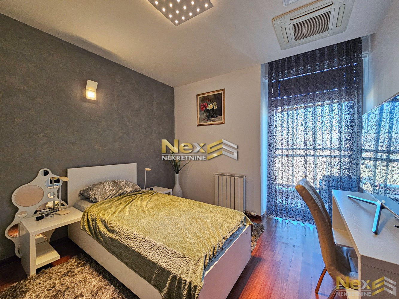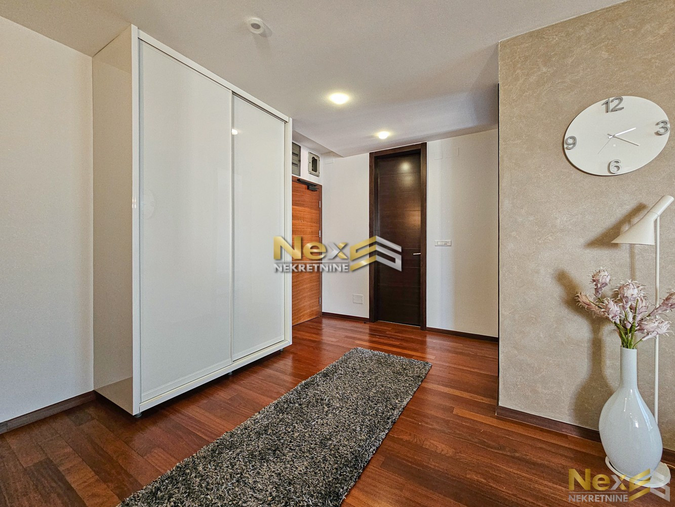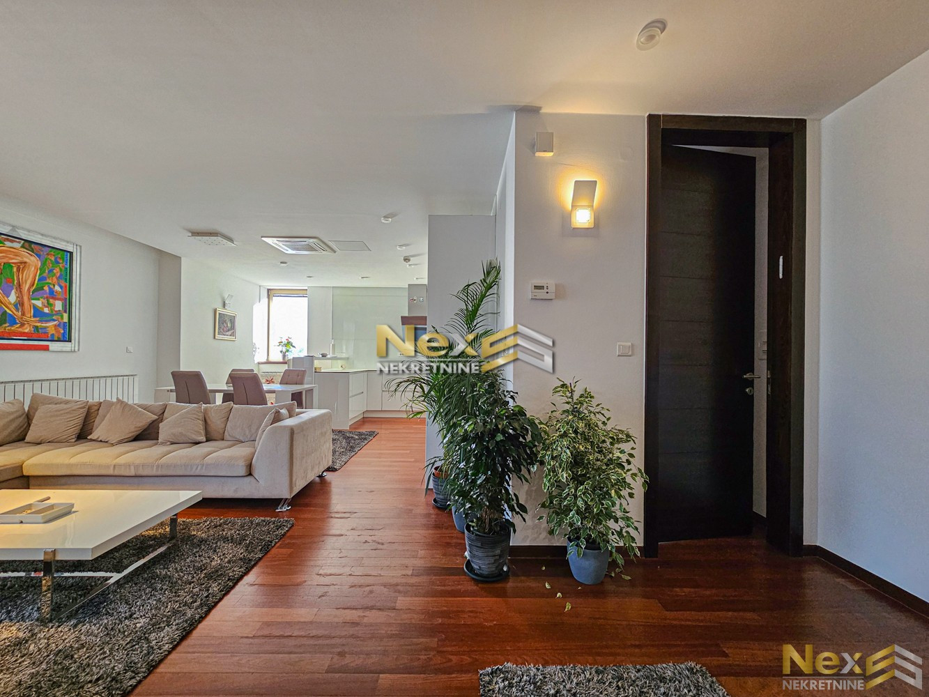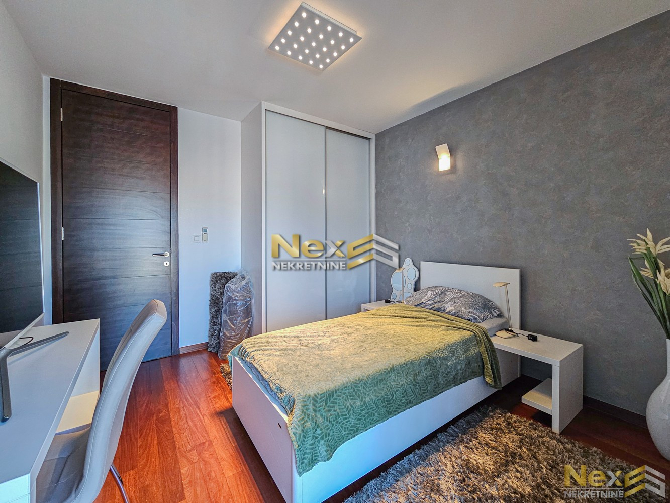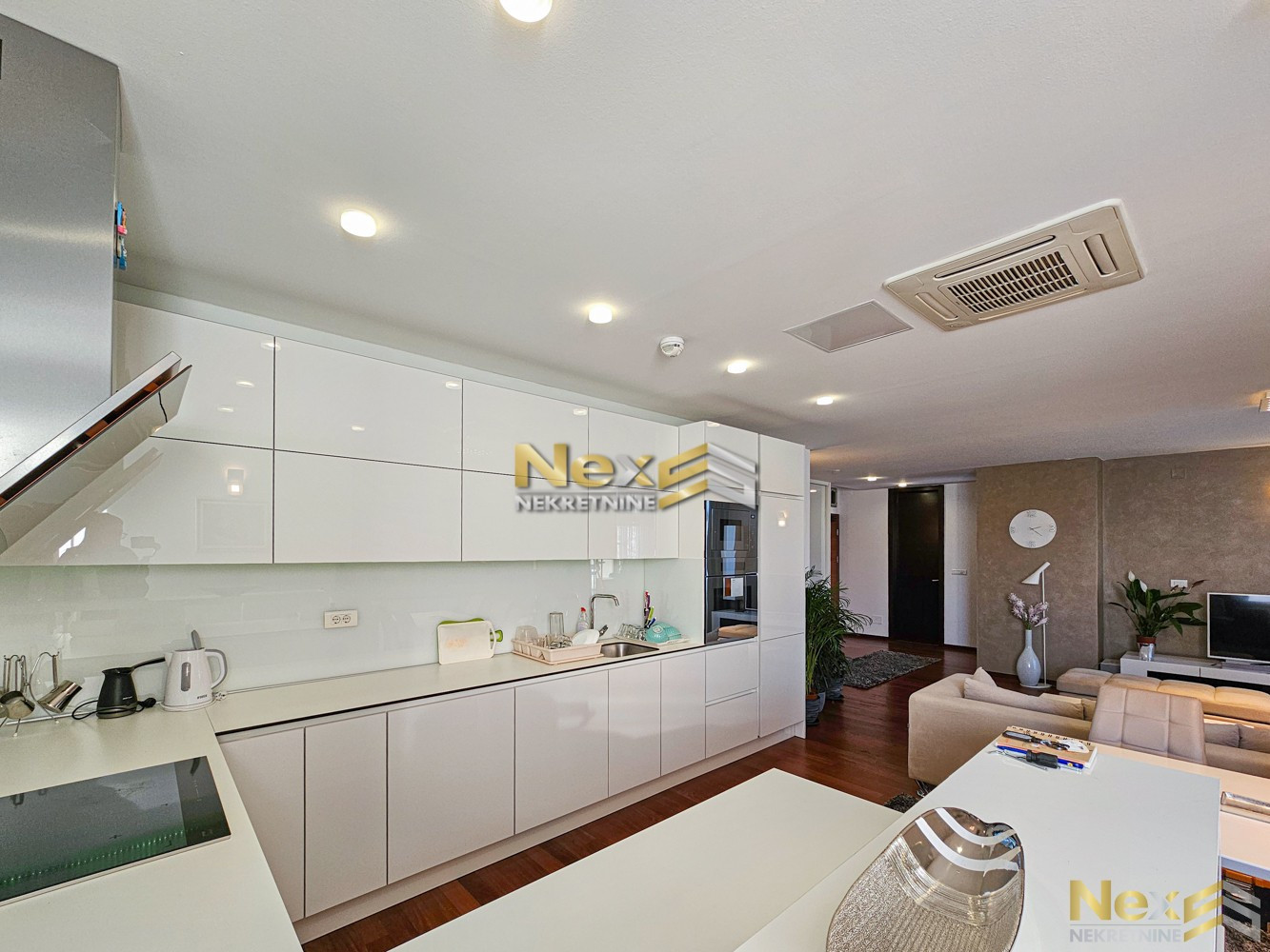 Iznajmljujemo kompletno namješten, trosoban stan površine 100 m2, pozicioniran na petnaestom spratu prestižnog Bosmal City Centra.
