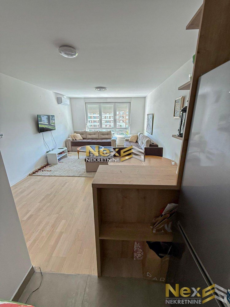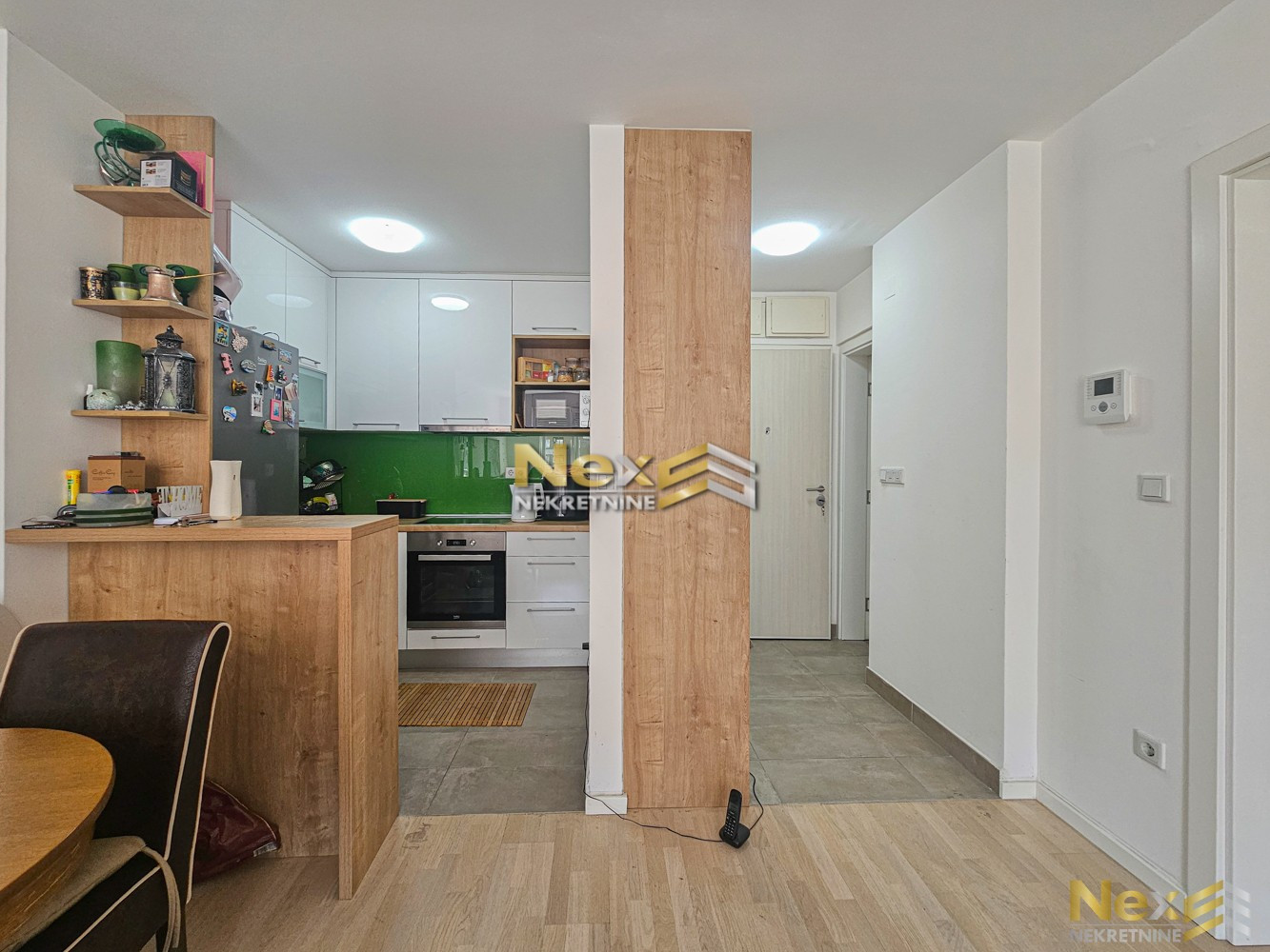 Stan se sastoji od hodnika, kupatila, dnevnog boravka sa trpezarijom i kuhinjom, spavaće sobe i male lođe.