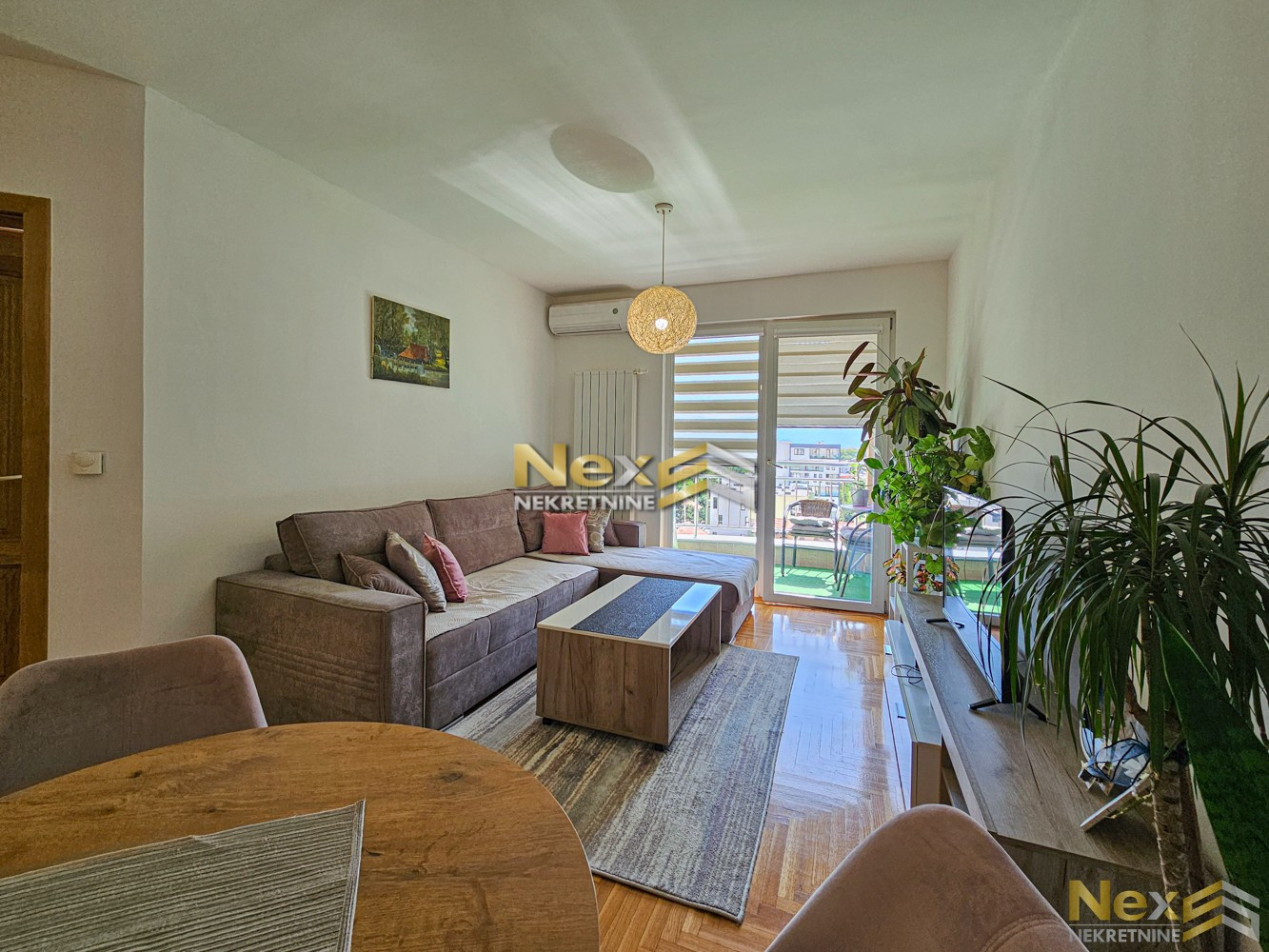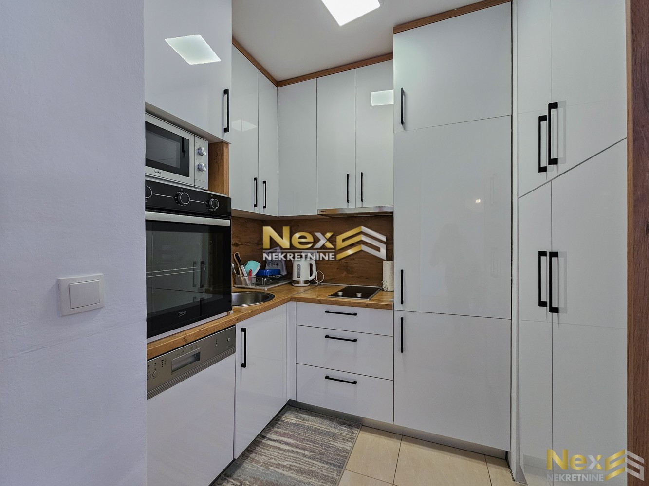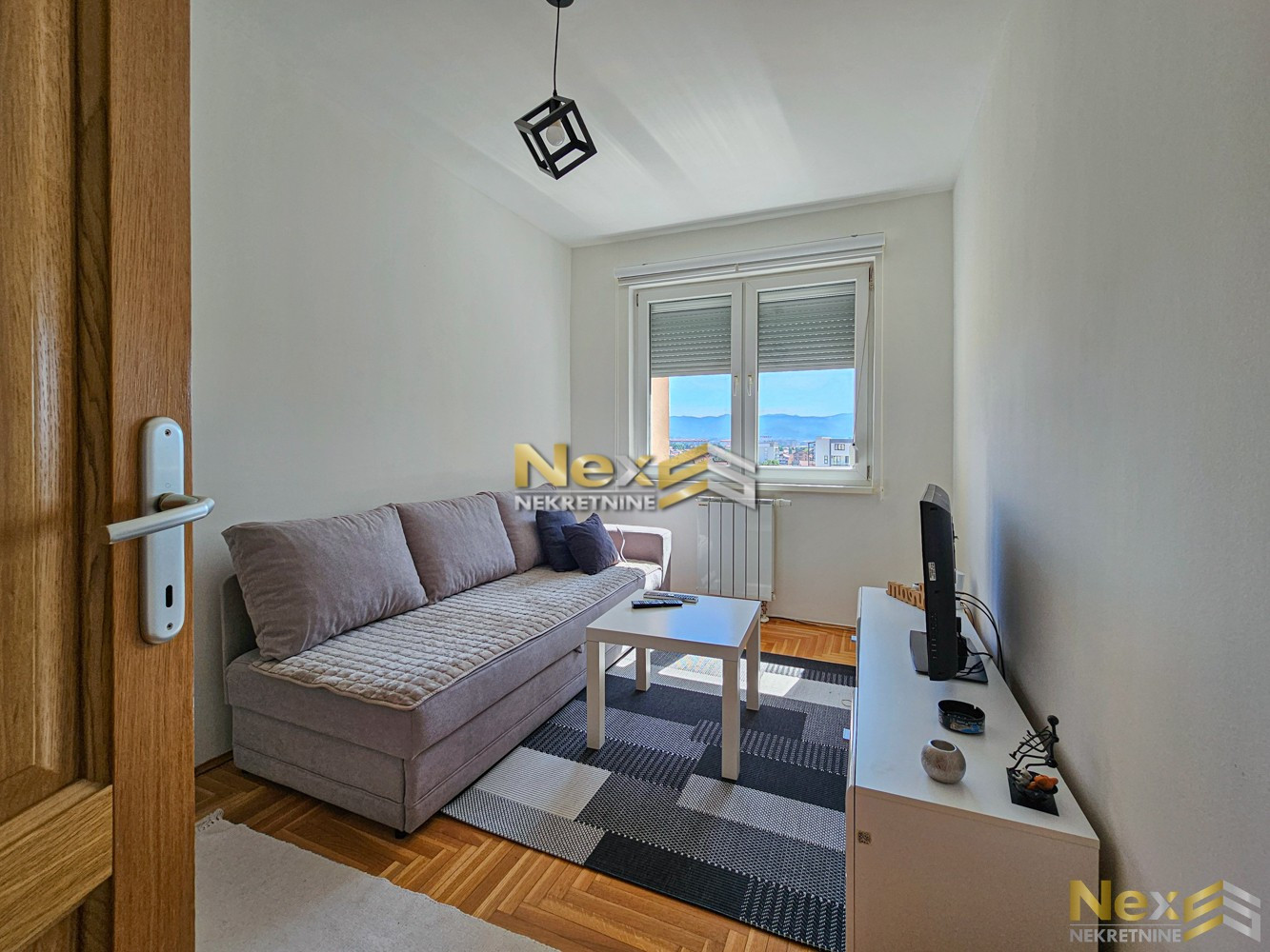 Prodajemo kompletno namješten, dvosoban stan površine 43,71 m2 pozicioniran na šestom spratu stambene zgrade sa dva lifta u naselju Stup - Tibra II.