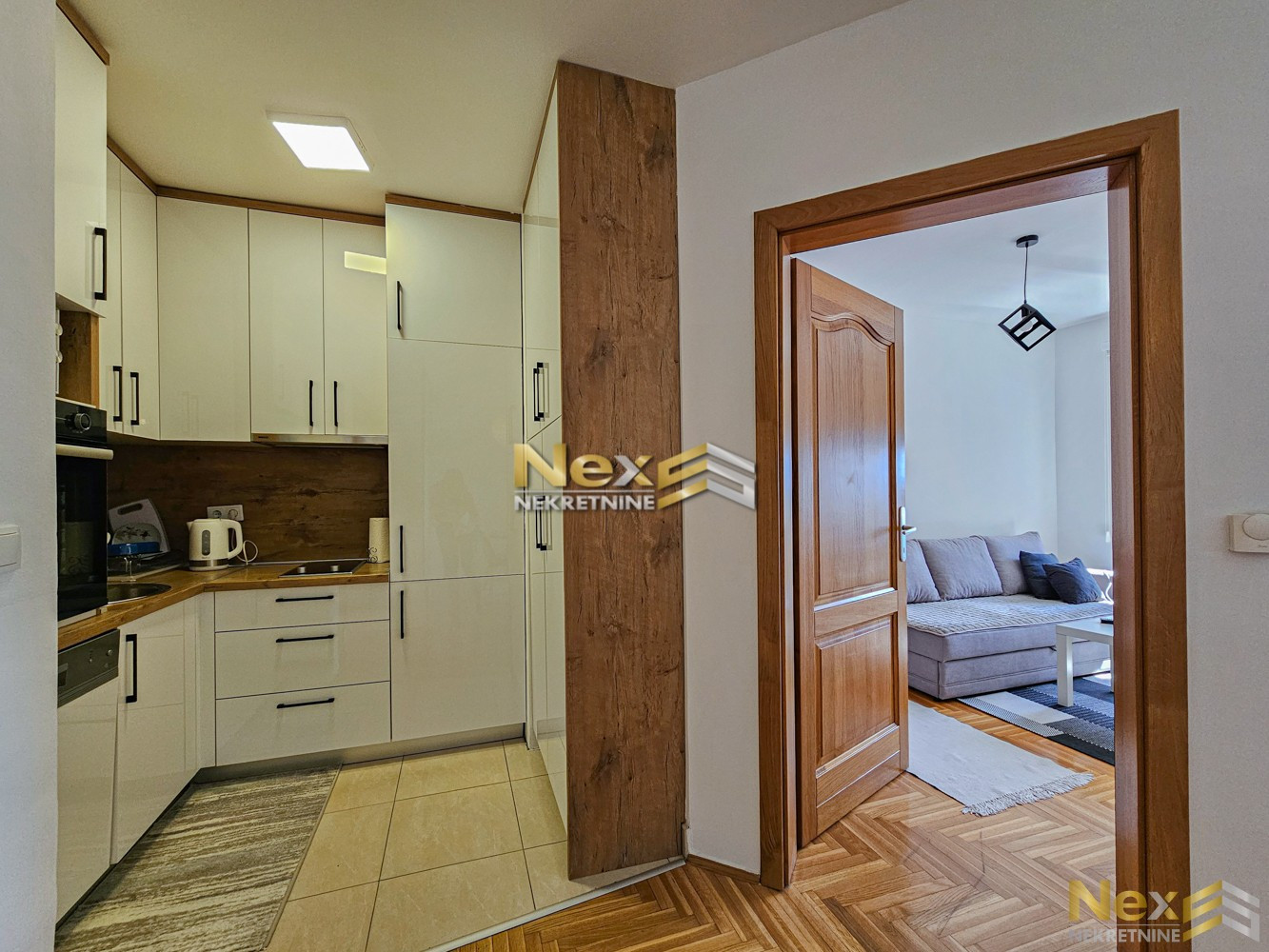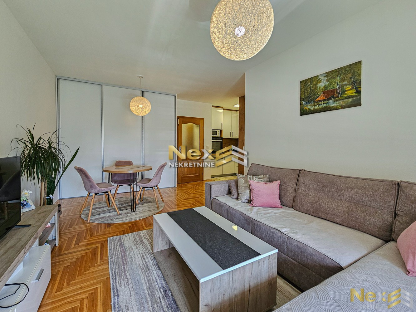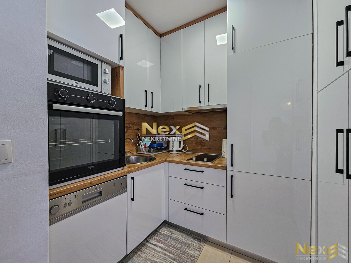 Prodajemo kompletno namješten, dvosoban stan površine 43,71 m2 pozicioniran na šestom spratu stambene zgrade sa dva lifta u naselju Stup - Tibra II.