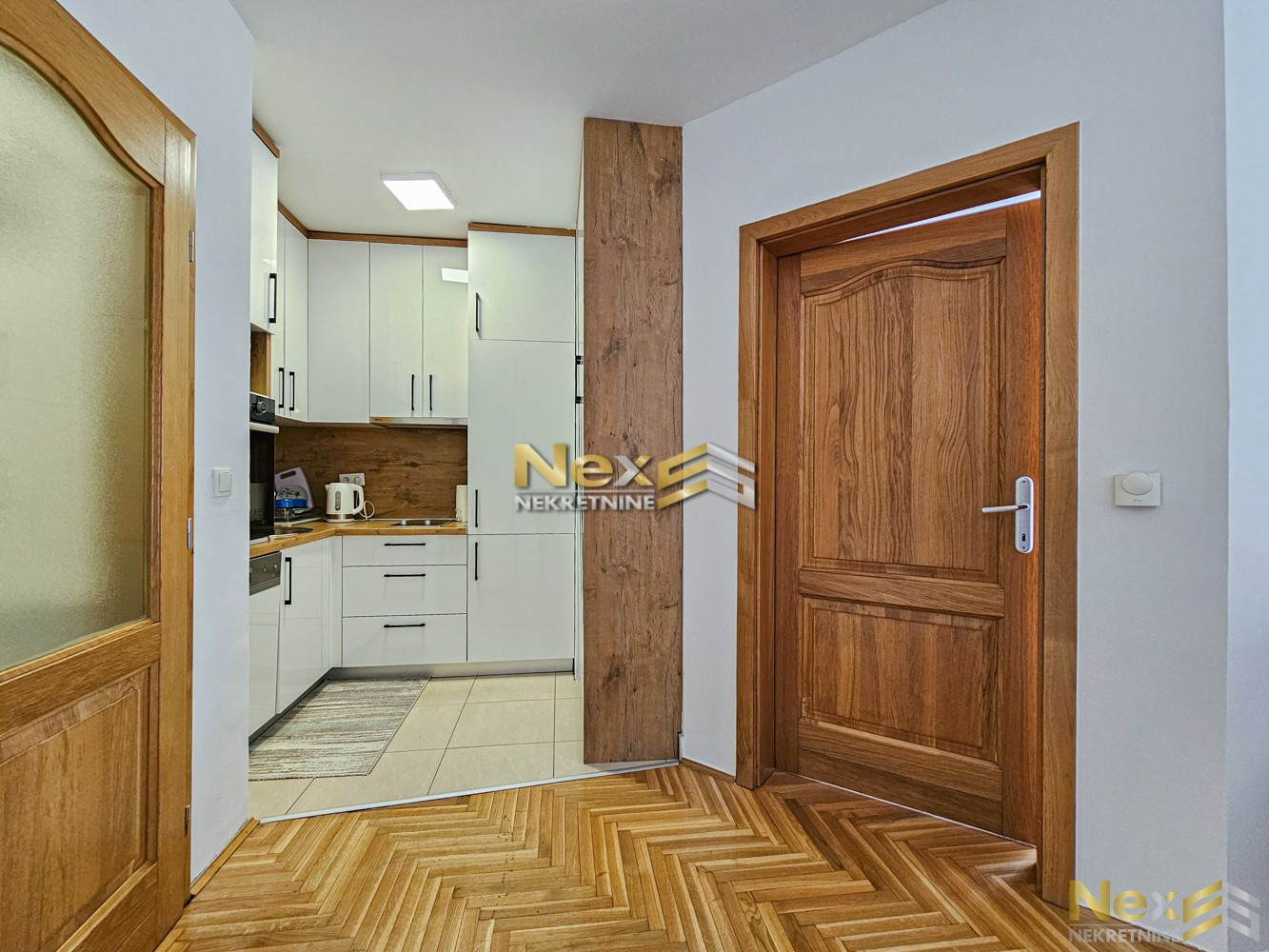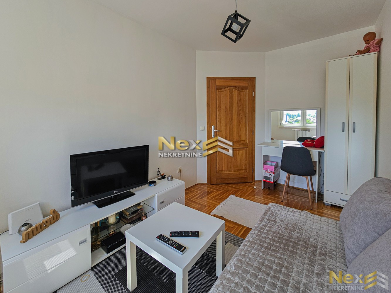 Na podovima u dnevnom boravku postavljen je kvaltetni hrastov parket (22mm), unutrašnja drvena stolarija (furnirani hrast), keramičke pločice u kupatilu, kuhinji i predsoblju, vanjska PVC stolarija (ALU fusion, šestokomorna), blinda vrata, grijanje centralno (kotlovnica) sa ugrađenim kalometrom, klima uređaj.