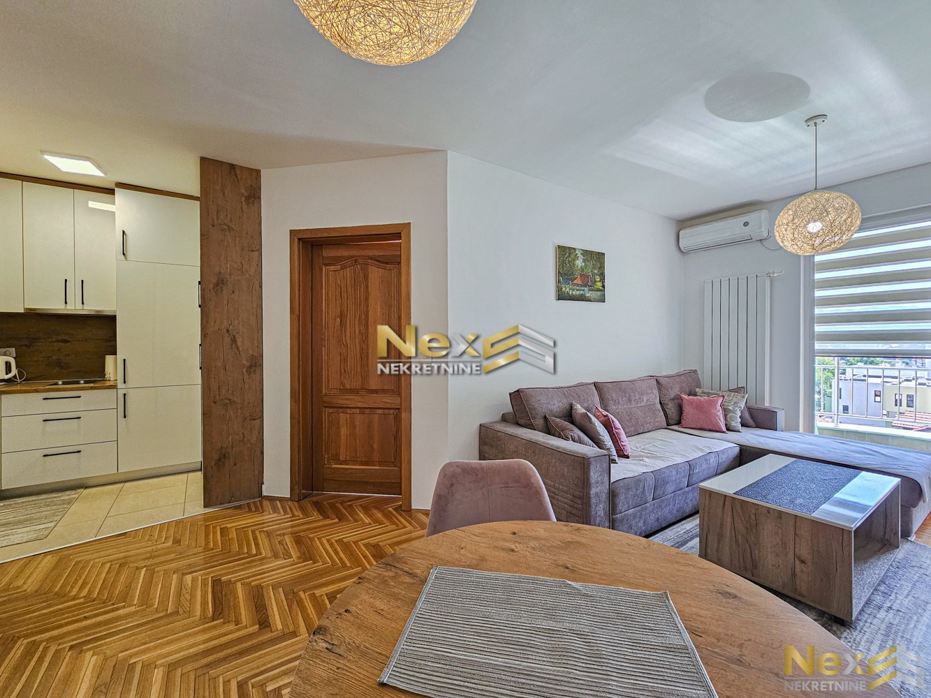 Stan se sastoji od hodnika, ostave, kupatila, spavaće sobe, zatim dnevnog boravka sa kuhinjom i trpezarijom te izlazom na manji balkon, koji ima otvoren pogled.