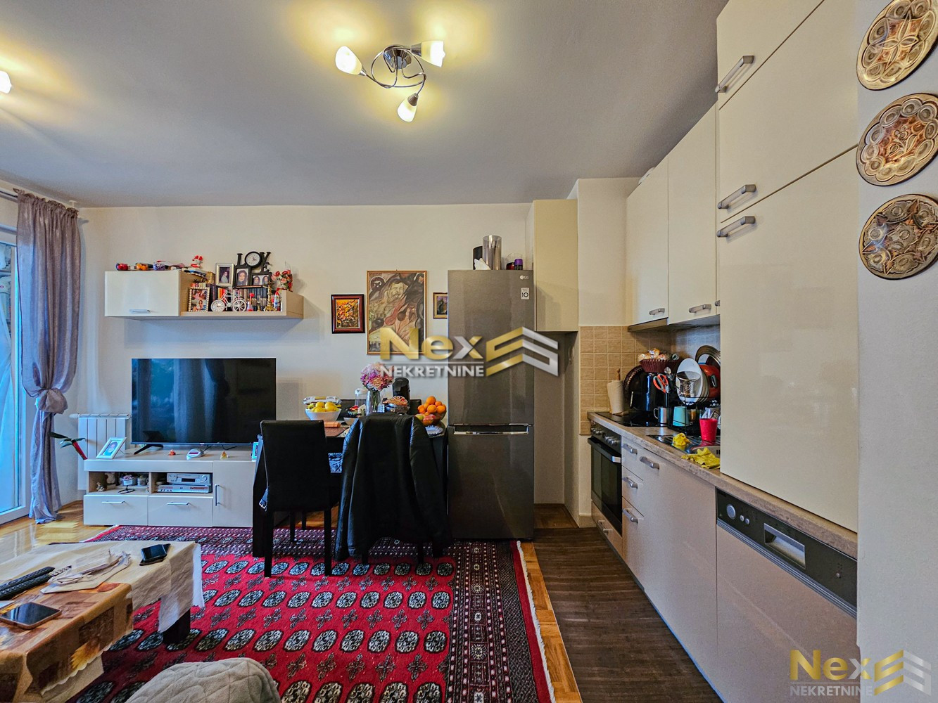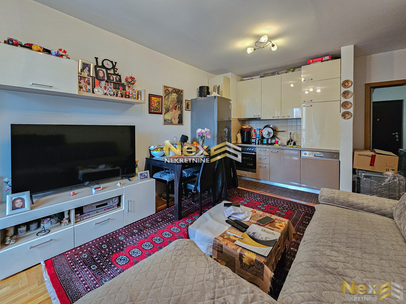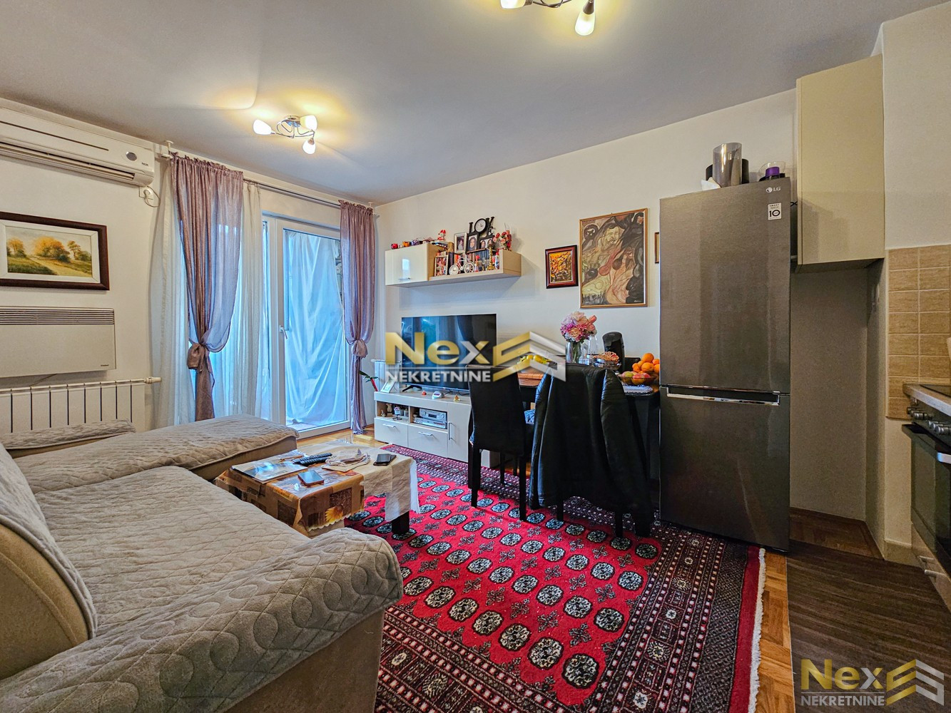 Stan se prodaje namješten (bez TV-a, LG frižidera i trpezarijskog stola i stolica).