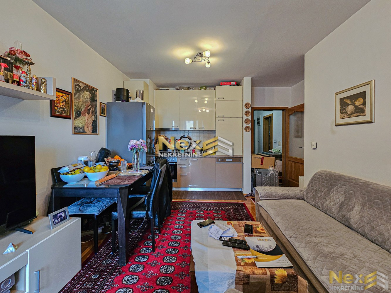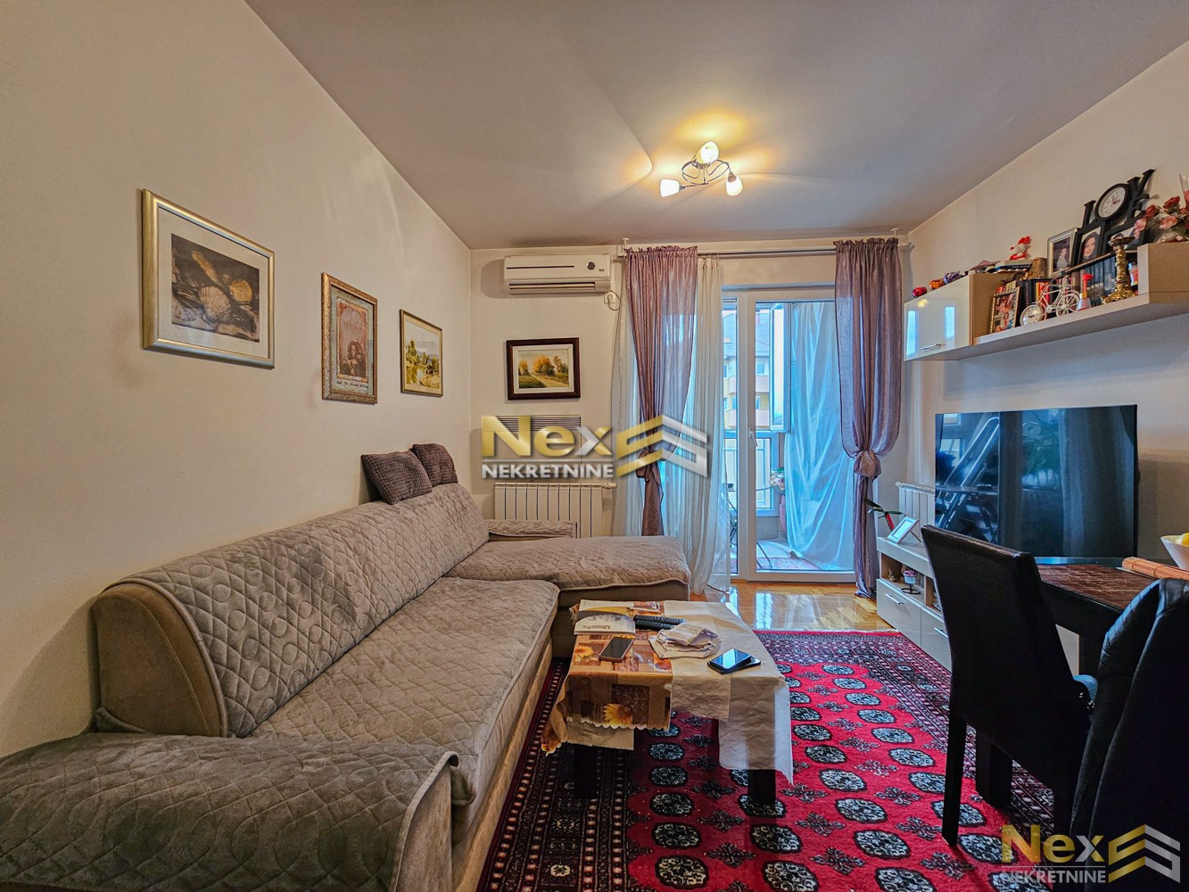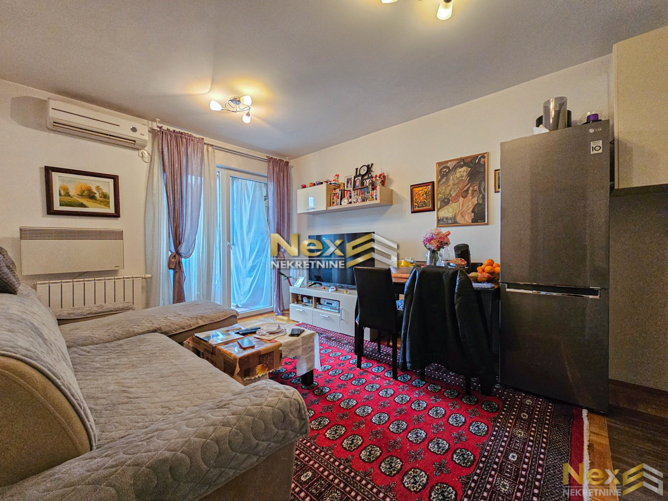 Stan se prodaje namješten (bez TV-a, LG frižidera i trpezarijskog stola i stolica).