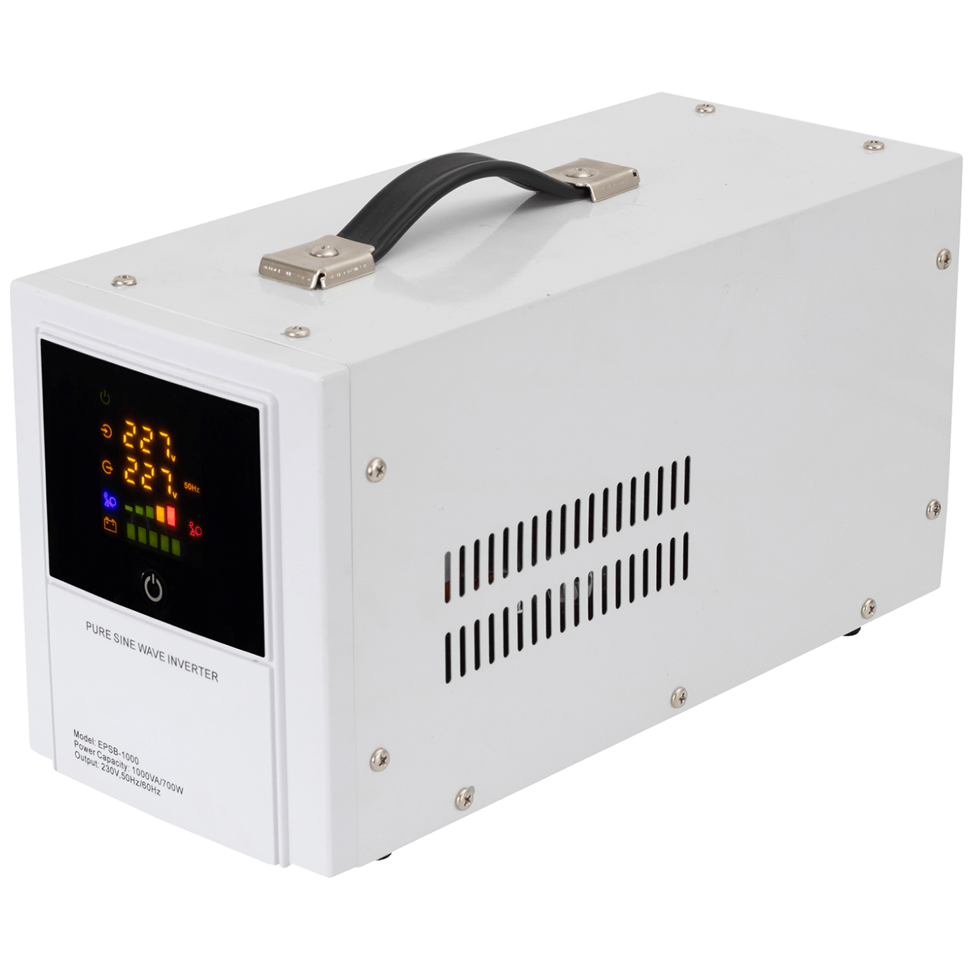 UPS/ Izvor neprekidnog napajanja i stabilizator napona, 1000 VA, 700 W snage. Funkcija 4u1, UPS neprekidno napajanje, stabilizator napona, pretvarač i punjač akumulatora. Stabilizator napona za ulazni napon od 140 - 275 V. Funkcija UPS-a i pretvarača uz bateriju od 12 V. Punjenje baterije 10 A max., preporučeni kapacitet akumulatora min. 40 Ah, dužina napojnog kabela 80 cm, dužina kabela za bateriju 75 cm, dimenzije 145 x 170 x 340 mm (Isporučuje se bez akumulatora)