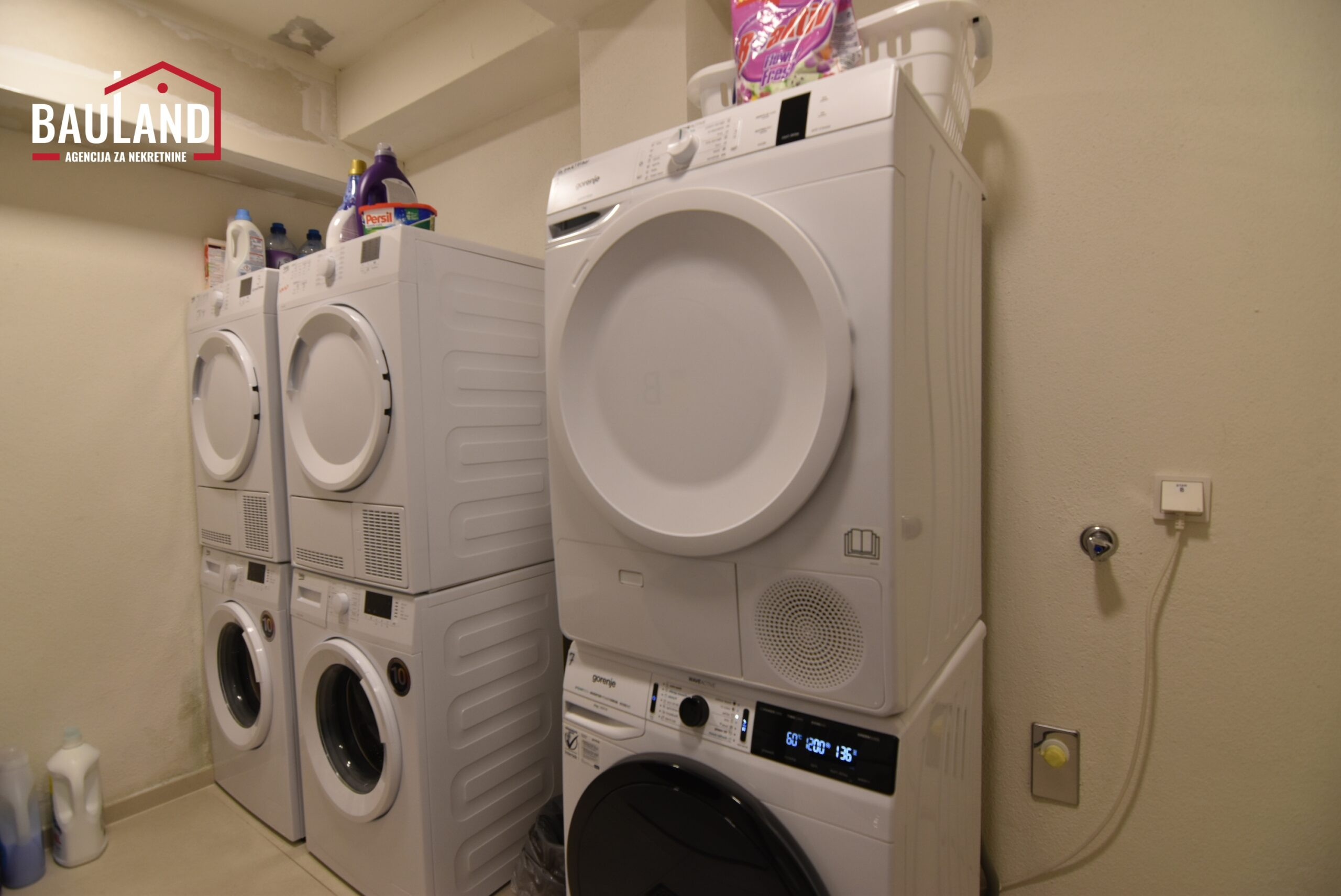 Stanu pripada jedno privatno parking-garažno mjesto, ostava i koristi zajednički vešeraj koji se nalazi u suterenu zgrade u kojem se nalaze perilice i sušilice za svaki stan posebno.