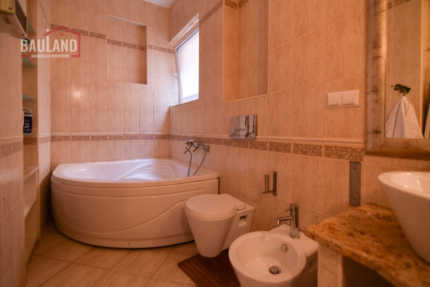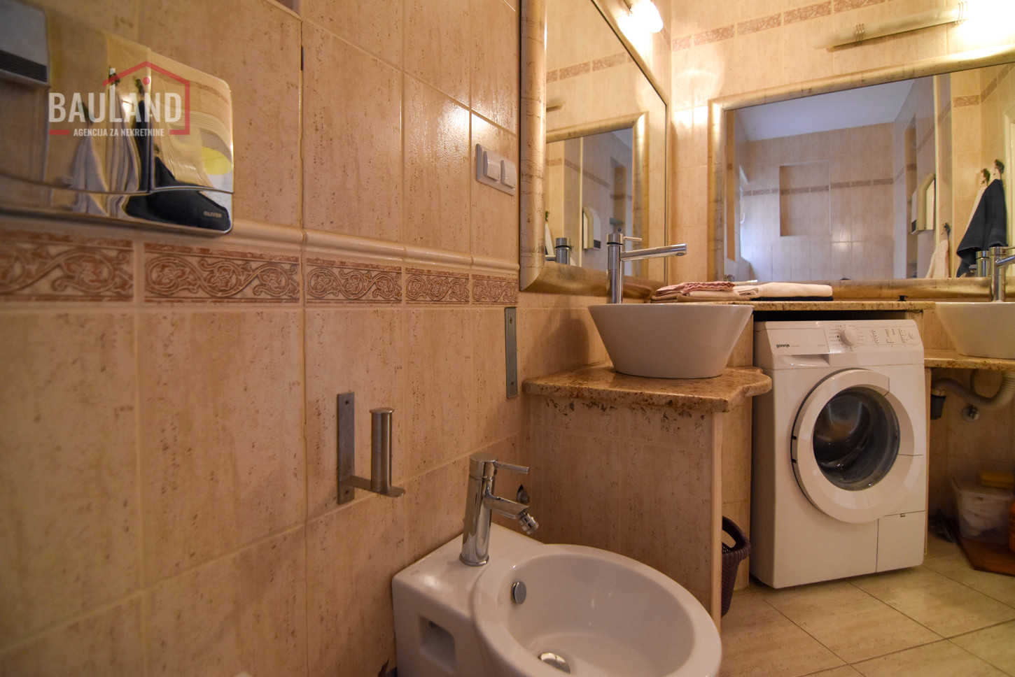Godine 2005. stan je potpuno renoviran, pri čemu su korišteni vrhunski materijali, a opremljen je kvalitetnim namještajem. Nisu potrebna veća ulaganja, osim eventualnih manjih adaptacija prema željama budućih vlasnika. Grijanje je na električne konvektore, vanjska stolarija je PVC, dok je unutrašnja stolarija drvena. Podovi su obloženi visokokvalitetnim parketom i keramičkim pločicama.