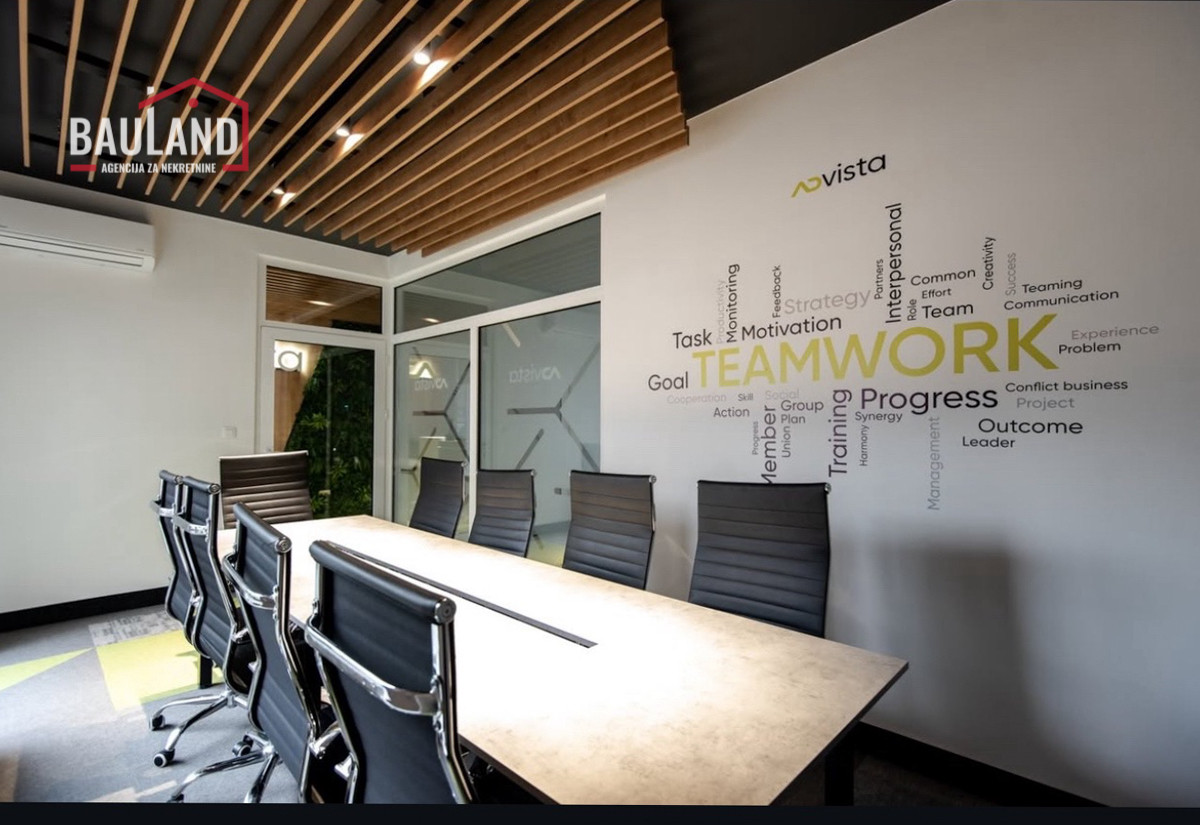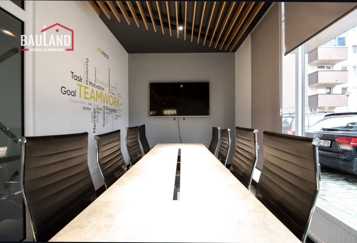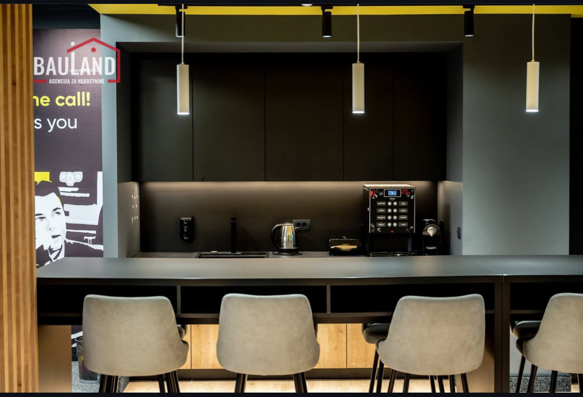 Prostor se sastoji od elegantne konferencijske sale površine 14,6 m², idealne za timske sastanke, prezentacije i video konferencije, opremljene velikim ekranom i akustičnom izolacijom. Dva zasebna ureda, površina 7,6 m² i 17,4 m², pružaju miran i profesionalan ambijent, savršen za menadžment, HR ili direktorske funkcije. Centralni dio čini ugodan prostor za odmor s kuhinjom (29,4 m²), opremljen savremenim aparatima poput aparata za kafu, frižidera i drugih kuhinjskih uređaja, što ga čini pogodnim za neformalne susrete i pauze. Ulazni hol (5,3 m²) i prostran hodnik (29,0 m²) stvaraju prijatan prvi dojam, s recepcijom za doček klijenata i zaposlenika. Prostor također raspolaže moderno uređenim toaletima (8,2 m²), odvojenim za muškarce i žene, s kvalitetnom sanitarnom opremom i ventilacijom.