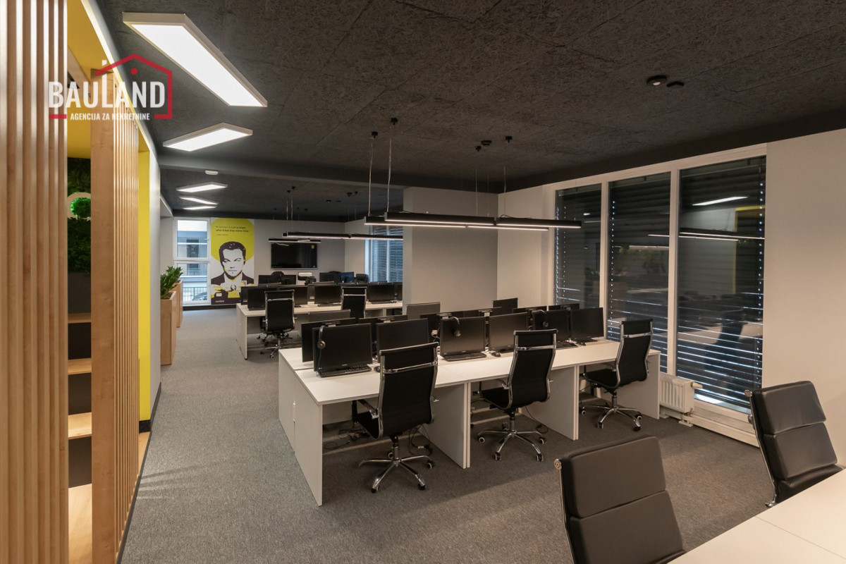Osnovu prostora čini veliki open space radni prostor površine 88,8 m², opremljen s 22 radna mjesta, ergonomskim stolicama i radnim stolovima, te potpunom IT infrastrukturom (LAN i WiFi mreža). Prostor je osmišljen tako da omogućava fleksibilno raspoređivanje timova i prilagodbu različitim poslovnim potrebama. Pored toga, na raspolaganju je i zona za odmor i kuhinja (29,4 m²), koja nudi udoban prostor za pauze i neformalne susrete, kao i ulazni hol (5,3 m²), hodnik (29,0 m²) i moderno opremljeni toaleti (8,2 m²). Cijeli prostor je osmišljen s naglaskom na funkcionalnost, estetiku i udobnost.