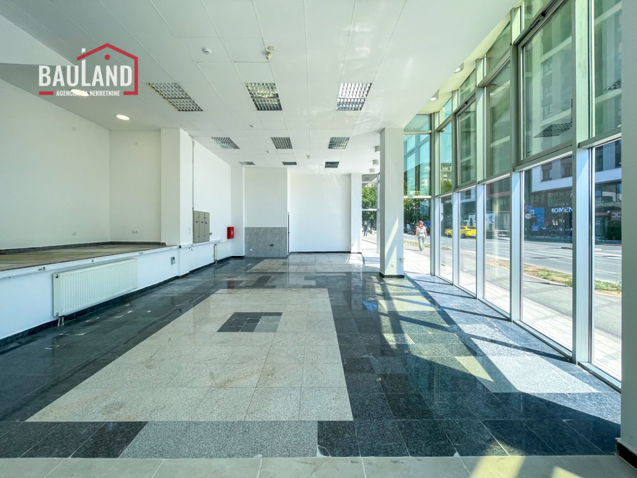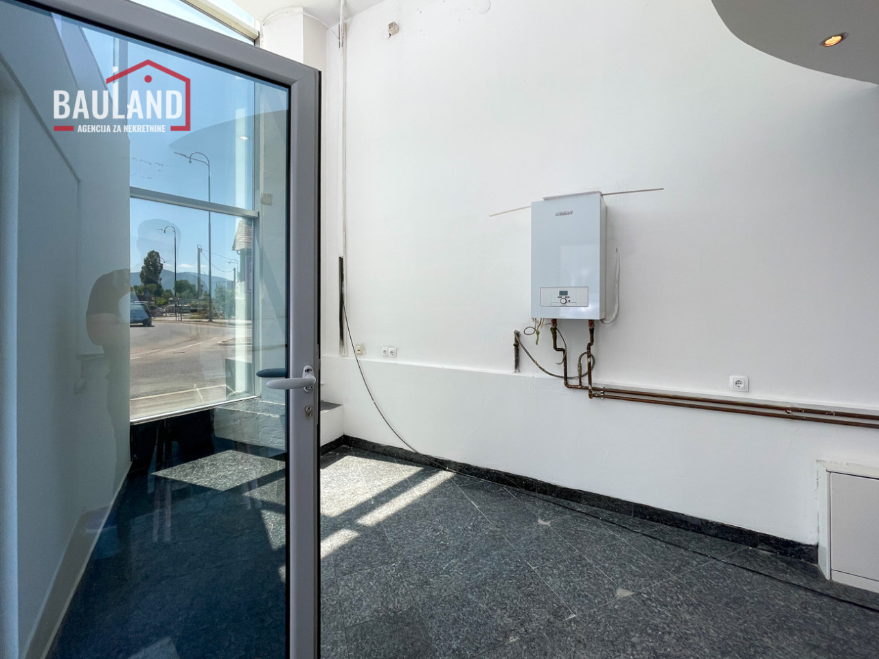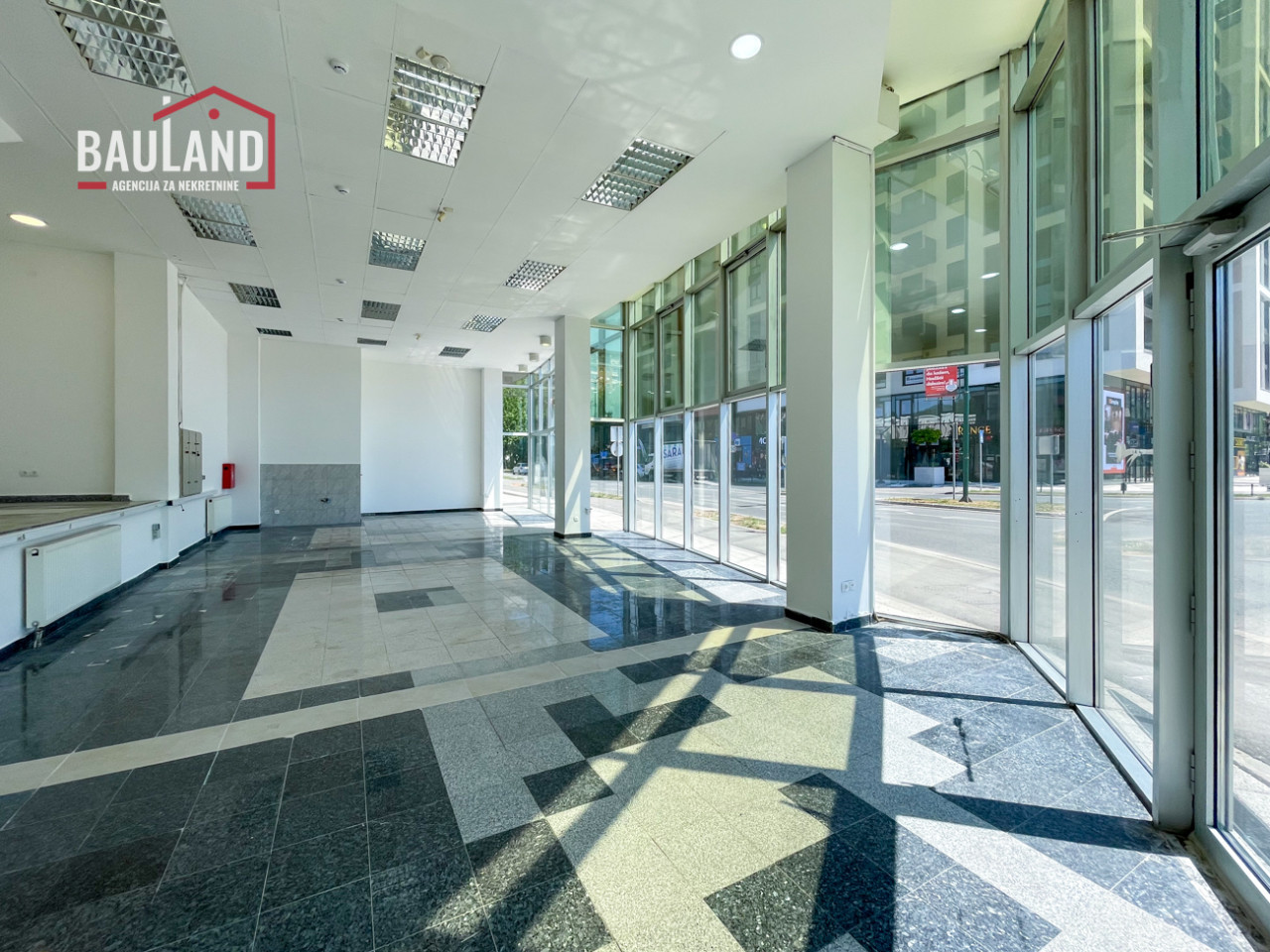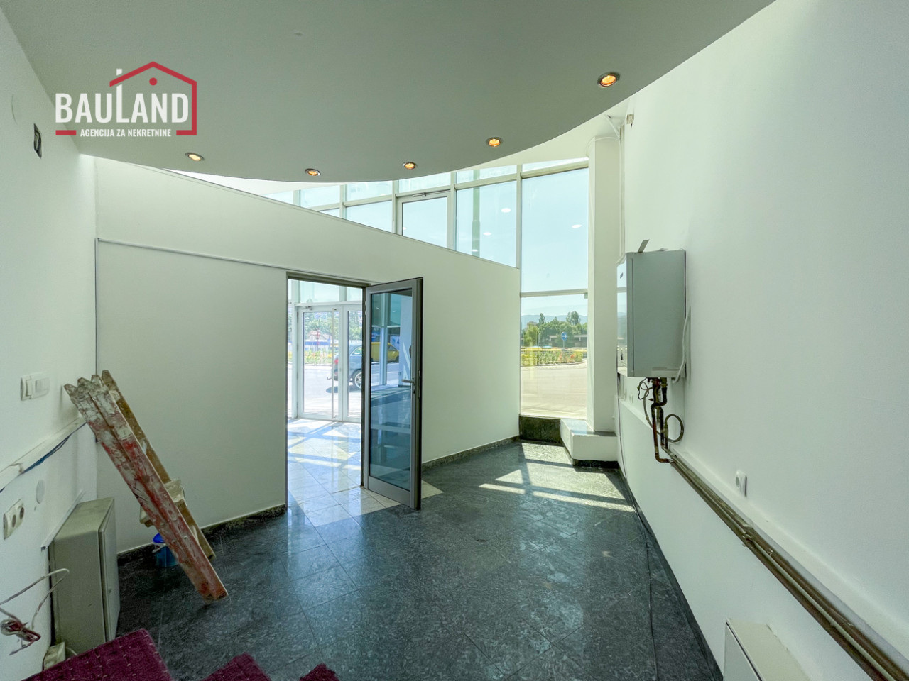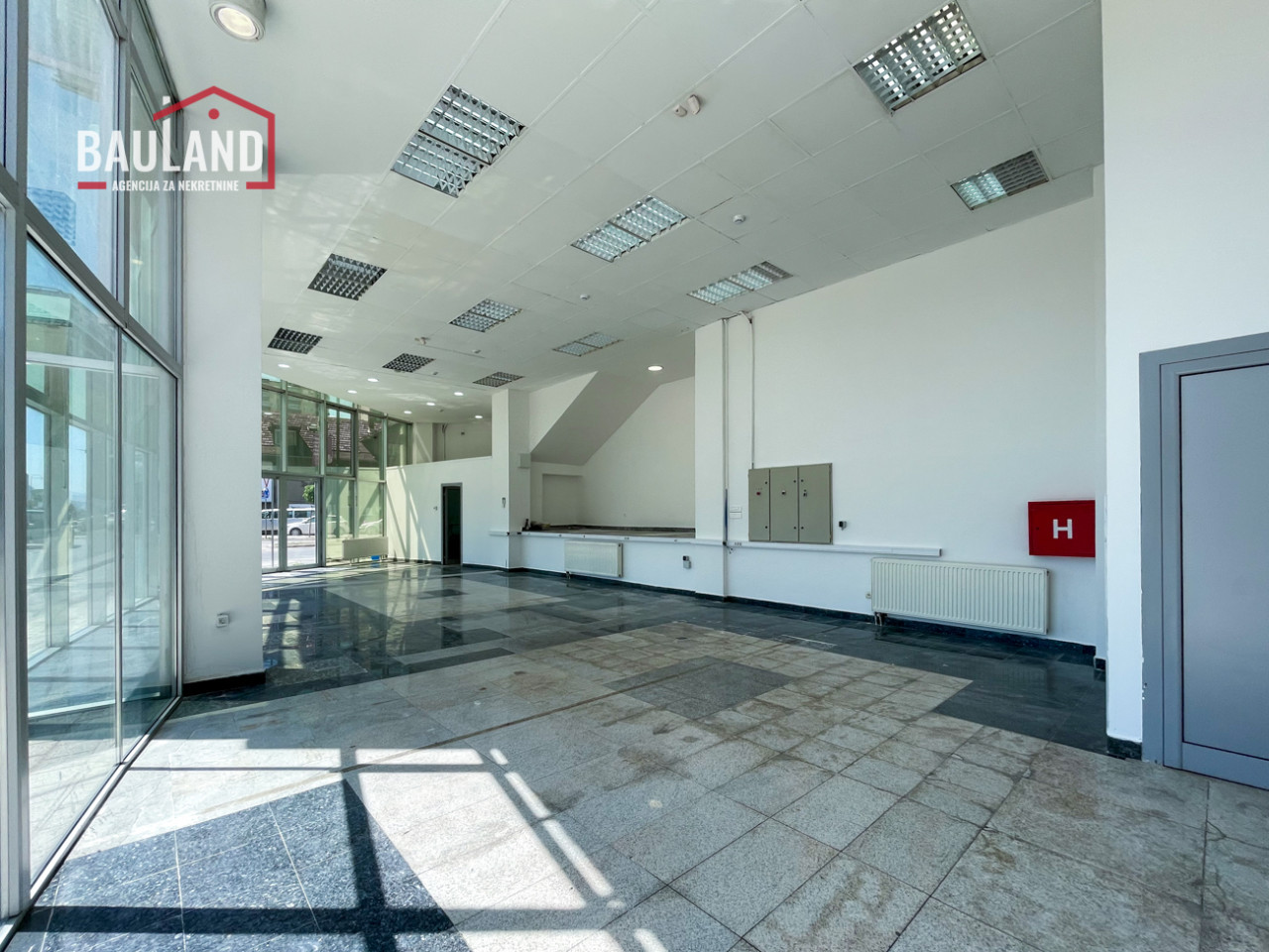 Prostor se nalazi u modernoj poslovnoj zgradi sa savremenom staklenom fasadom, pri čemu kompletna prednja strana – od poda do plafona – čini portal u punoj visini, što omogućava maksimalnu prirodnu osvijetljenost i snažan vizuelni utisak. Trenutno je u formi open-space koncepta, ali postoji mogućnost pregrađivanja i prilagodbe rasporeda prema potrebama zakupca, što dodatno povećava fleksibilnost korištenja.