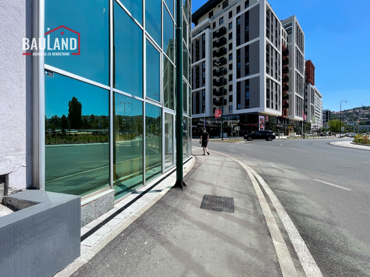 BAULAND izdaje izuzetno reprezentativan poslovni prostor površine cca 115m², smješten na jednoj od najatraktivnijih i najfrekventnijih lokacija u Sarajevu – ulica Džemala Bijedića, neposredno uz novi kružni tok i nasuprot novoizgrađenog stambenog kompleksa Avenija.