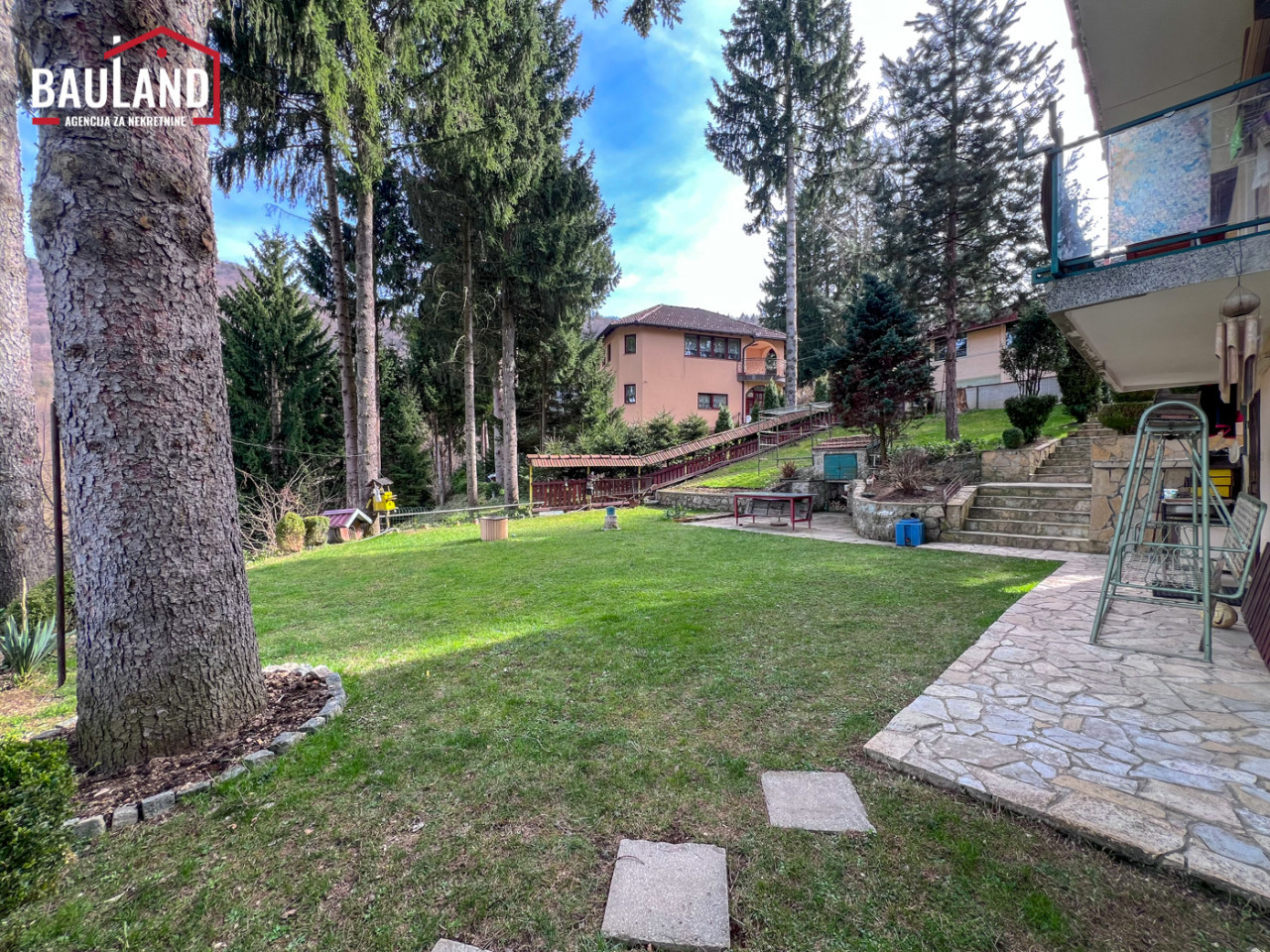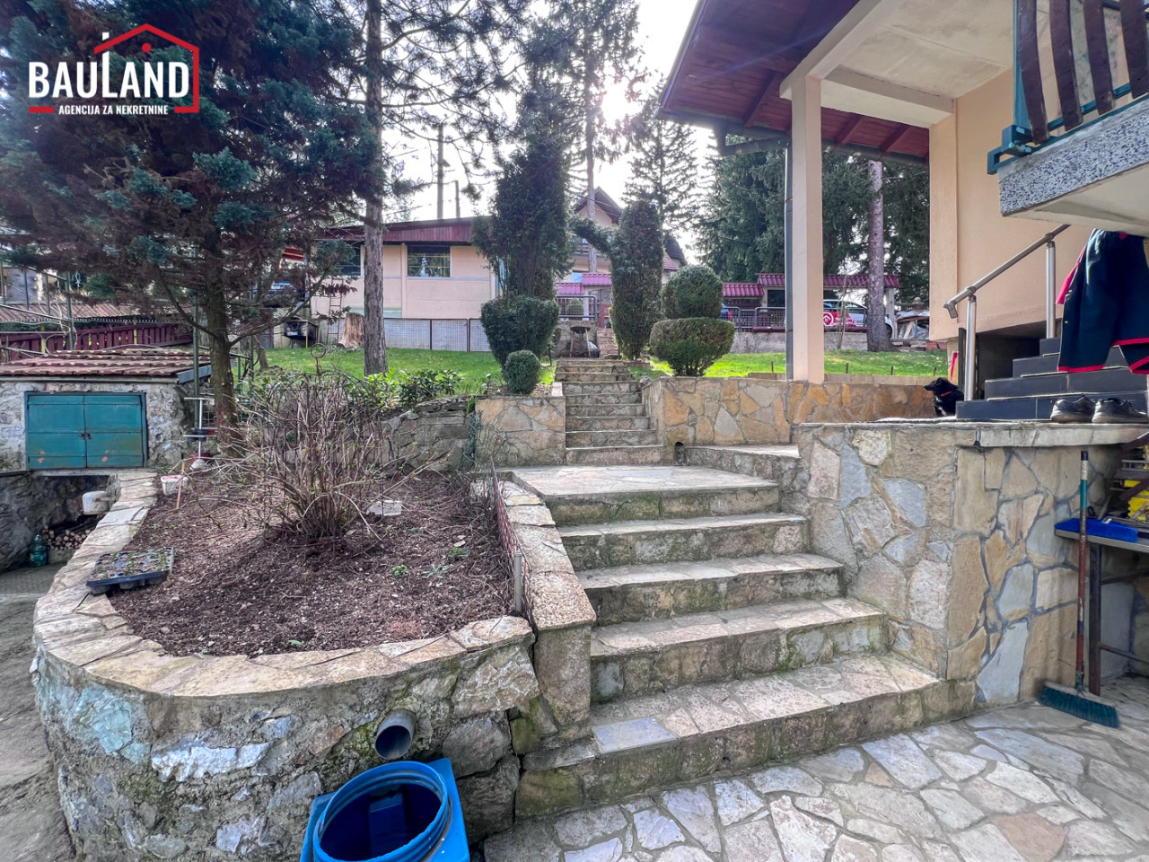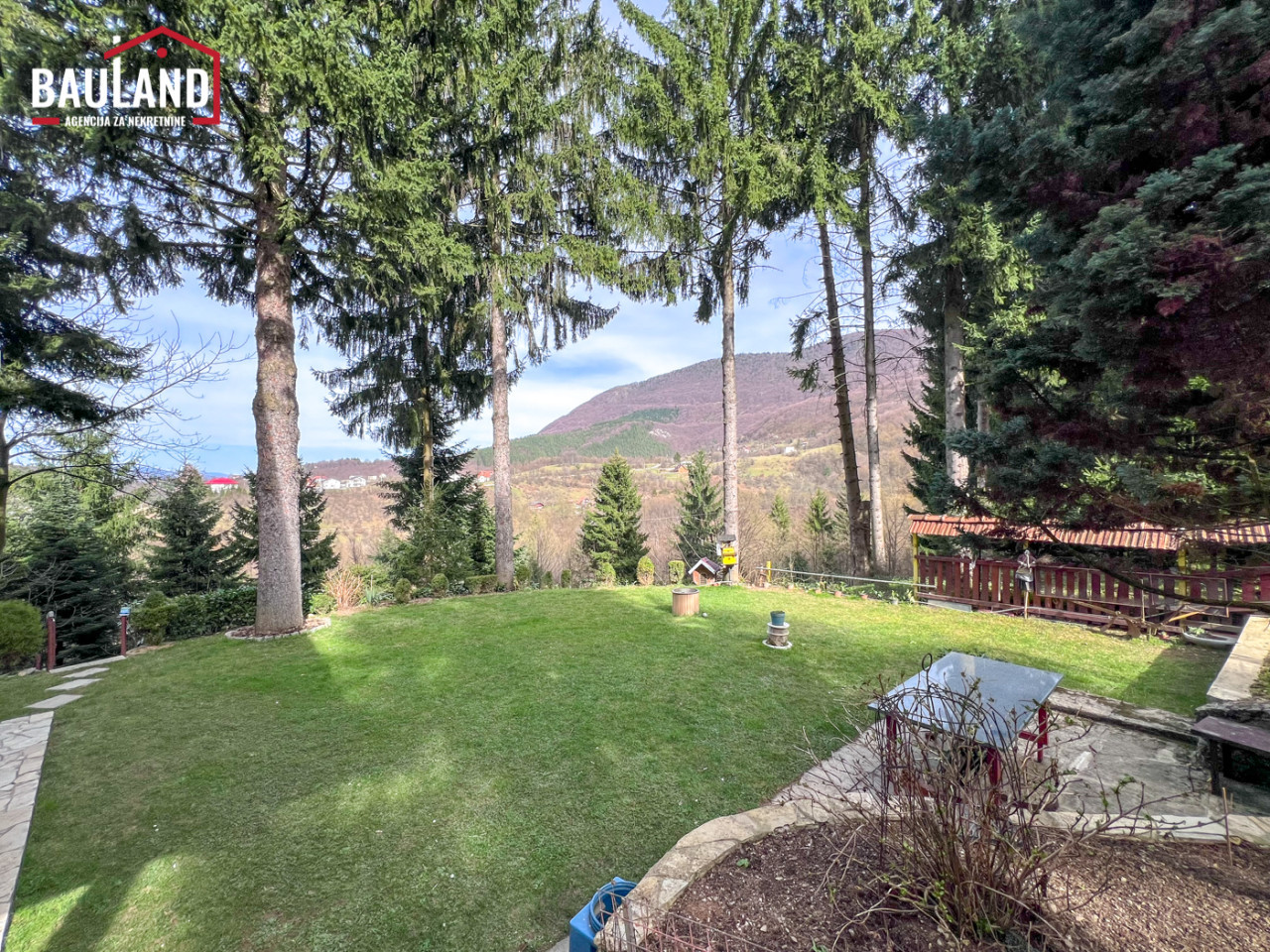 Cijeli posjed odiše planinskim duhom i mirom. Dvorište je pažljivo uređeno, obogaćeno borovima, raznovrsnim biljkama i cvijećem, a pogled se pruža prema okolnom zelenilu i širem dijelu opštine Hadžići. Ispred kuće smješten je kvalitetno građen kameni roštilj s prostorom za sjedenje, odlična prilika za druženja u prirodnom ambijentu.