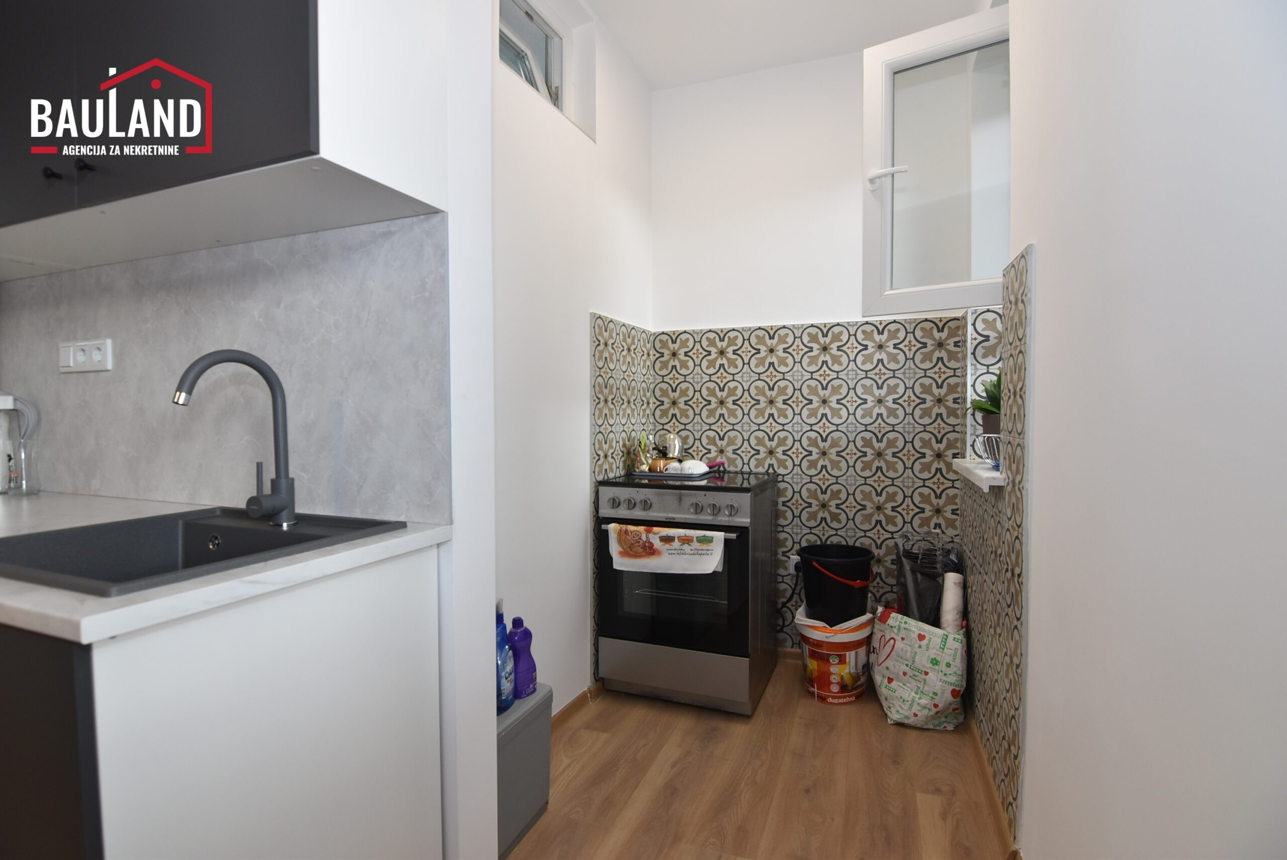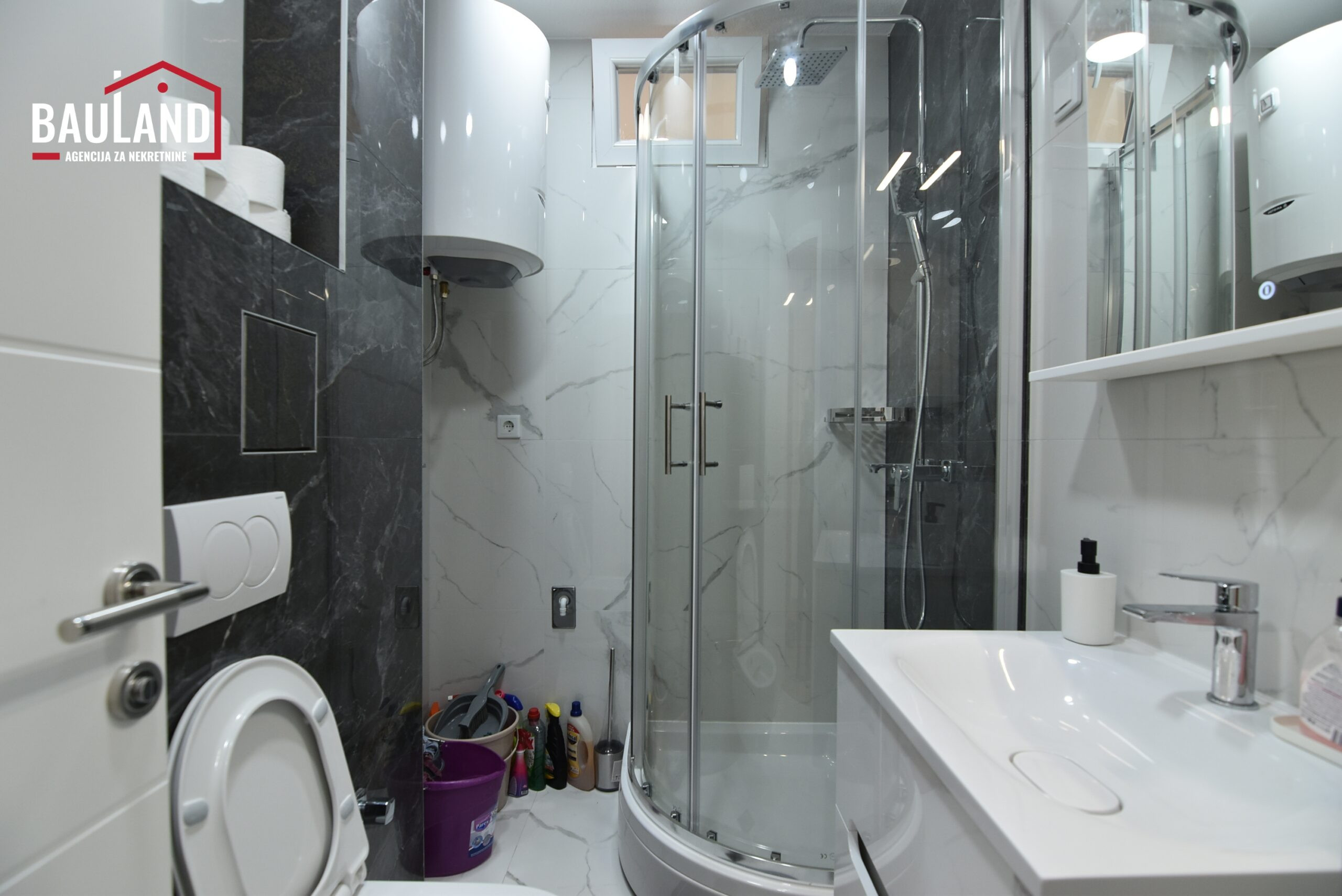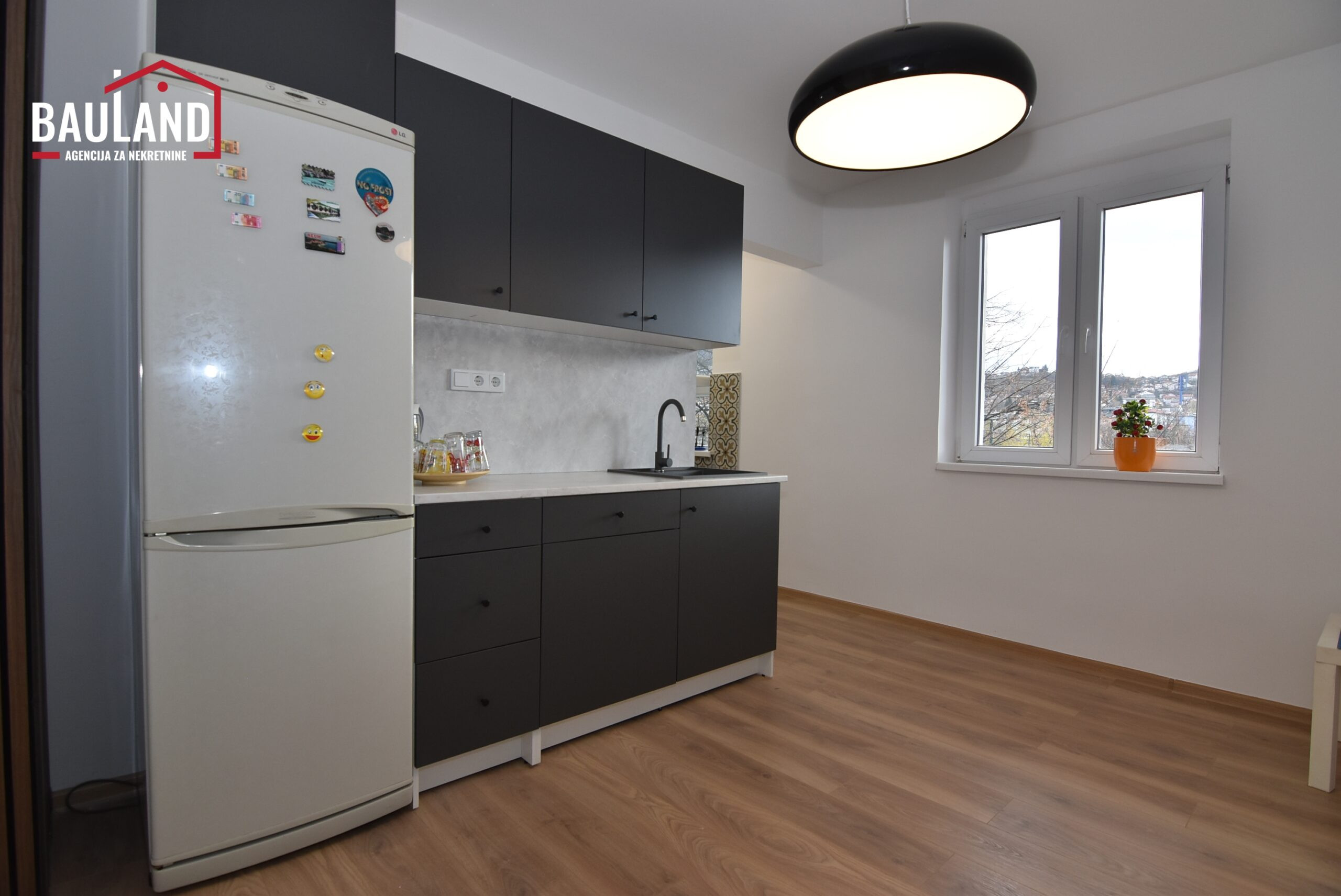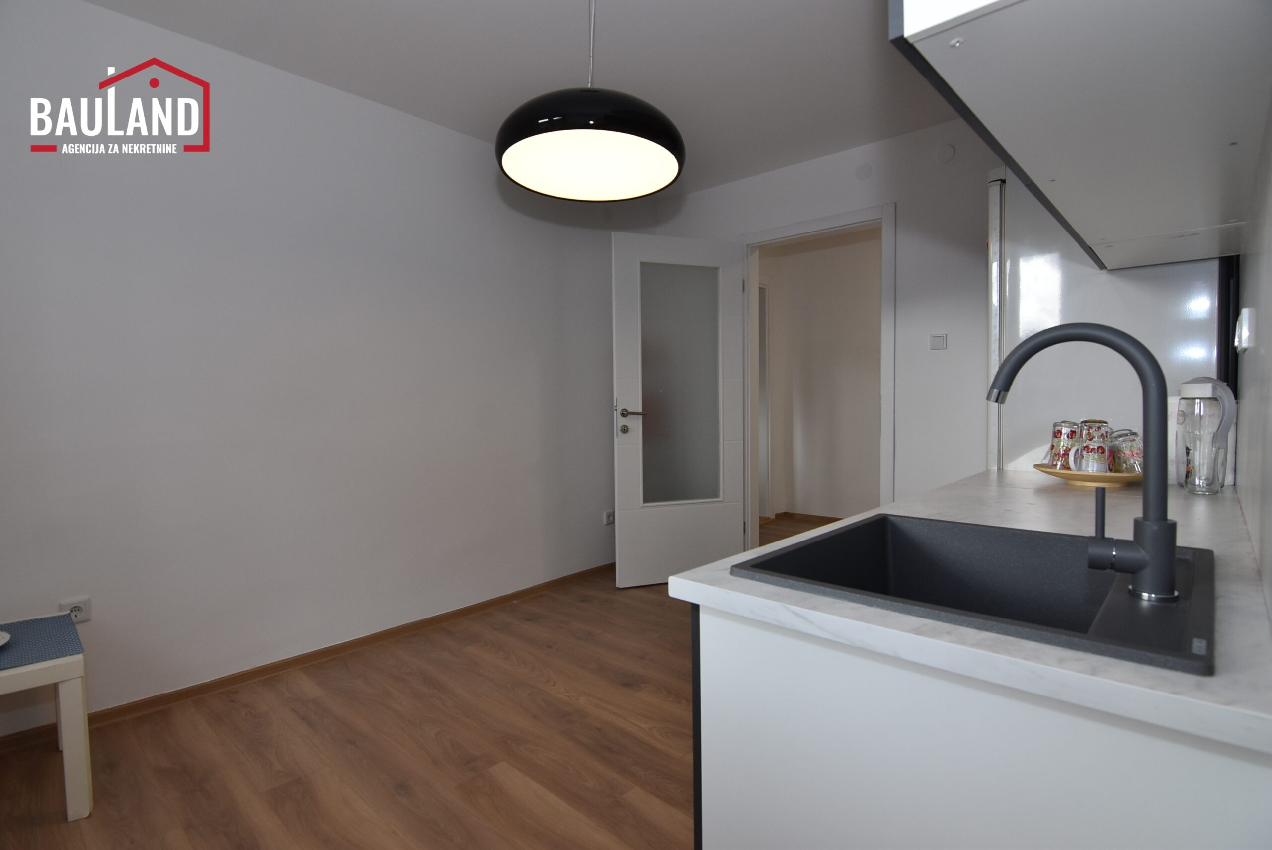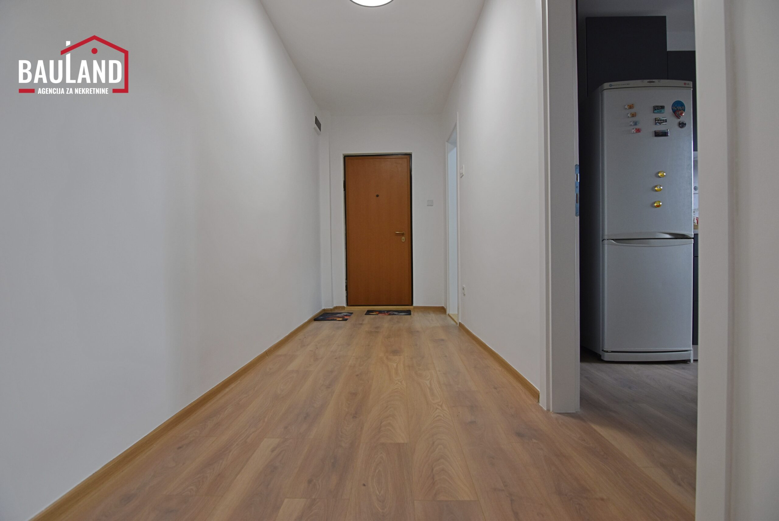 Predmetna nekretnina je nedavno kompletno renovirana. Vanjska stolarija je PVC, unutrašnja je drvena, na podu je postavljen laminat. Postavljena je i klima u jednoj od prostorija. Grijanje u stanu je na struju (inverter klima i konvektori).