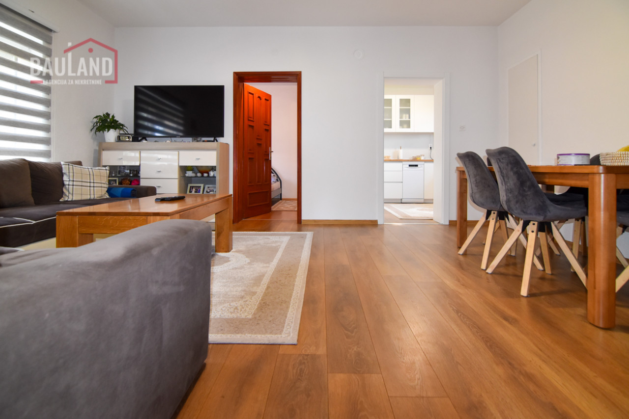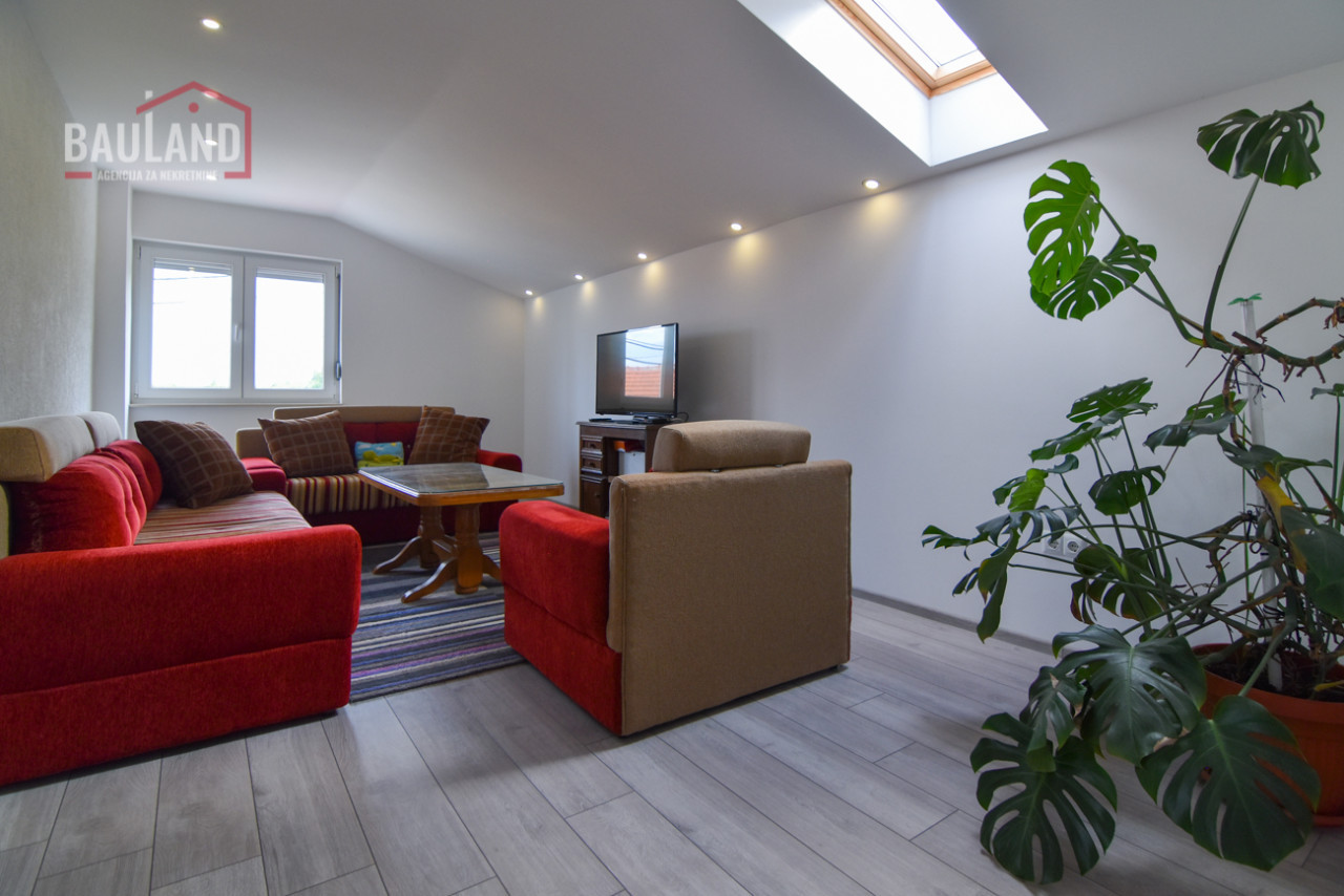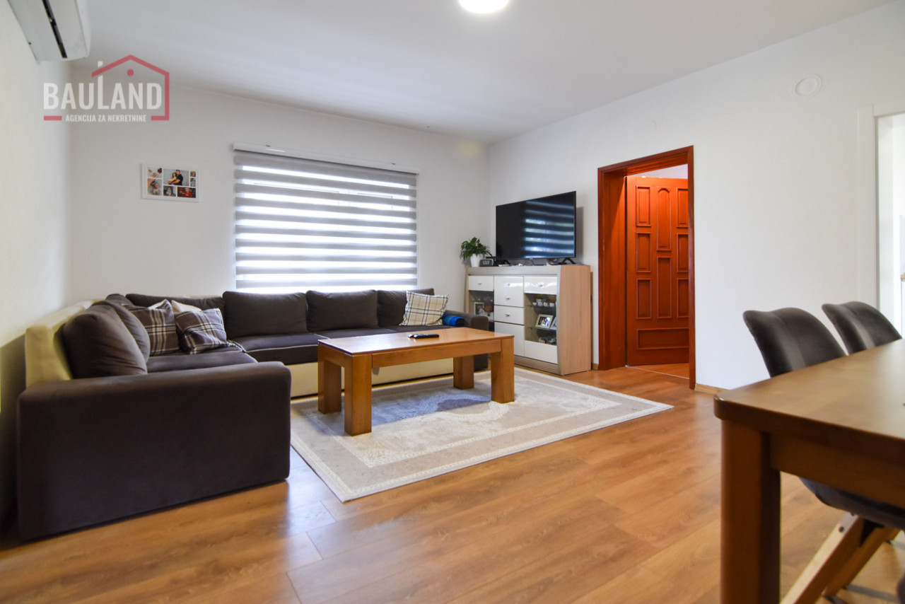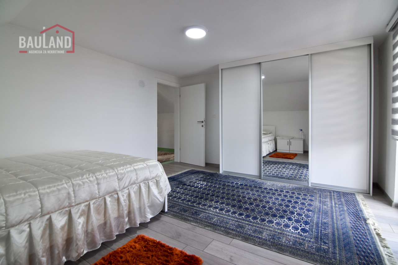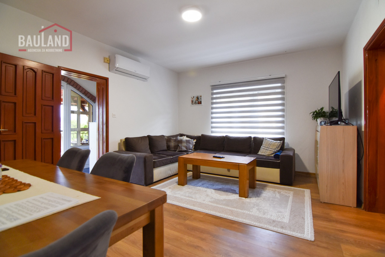 U prizemlju se nalazi dnevni boravak s trpezarijom, odvojena kuhinja, spavaća soba, kupatilo, zaseban toalet, ulazni hodnik, ostava, prostrana natkrivena terasa s kaminom, te garaža. Sprat sadrži dnevni boravak, spavaću sobu, dječiju sobu, kupatilo, balkon s izuzetnim pogledom i dodatnu terasu. Kuća je izgrađena osamdesetih godina, ali je u potpunosti adaptirana i proširena. Krov je prekriven limom u imitaciji crijepa, urađena je nova termoizolaciona fasada, betonirani su prilazi i trotoari, te postavljena ukrasna ograda.