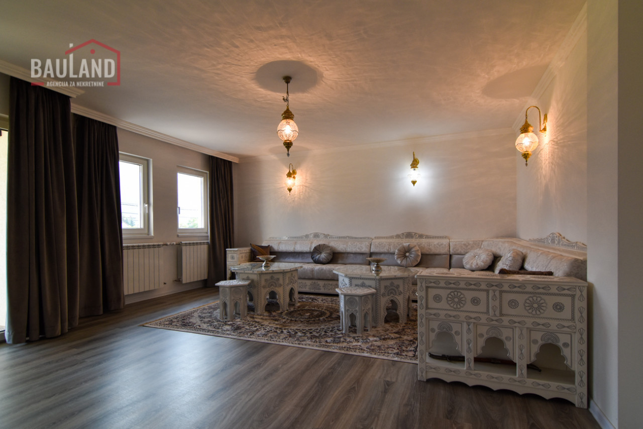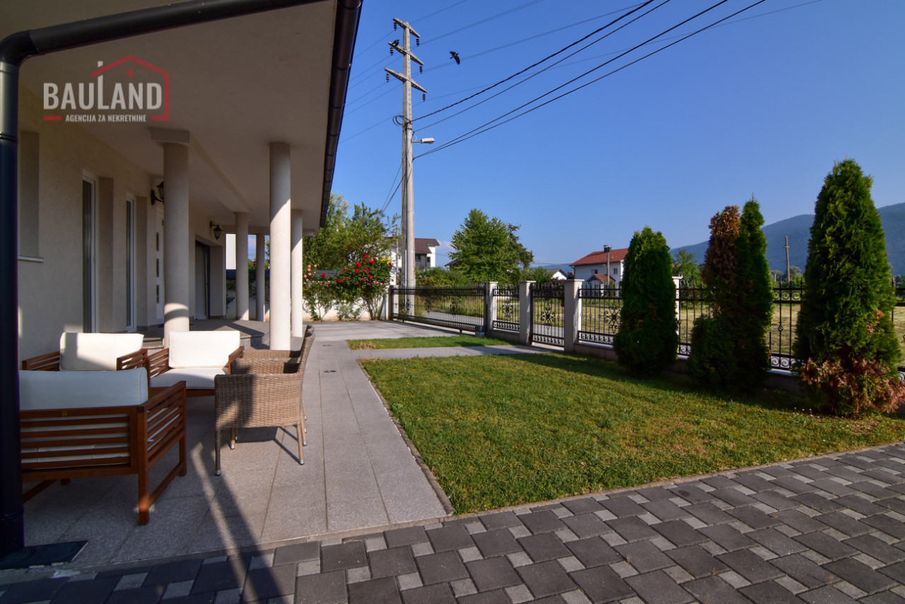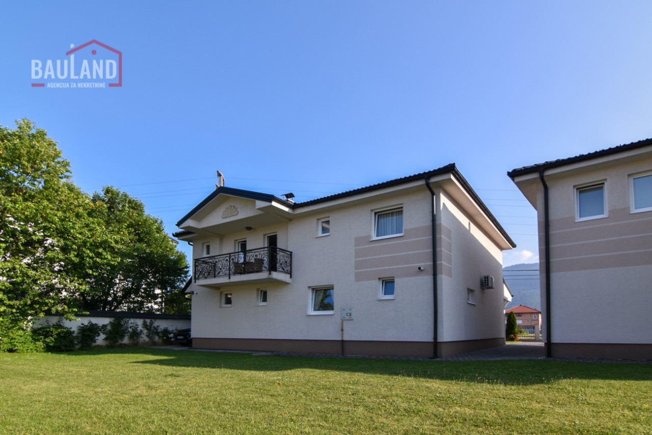 Nekretnina se sastoji od dvije etaže – prizemlja i sprata. U prizemlju se nalazi prostrani dnevni boravak povezan s kuhinjom i trpezarijom, jedna spavaća soba opremljena bračnim krevetom i ormarom, moderno kupatilo, garaža sa daljinskim upravljanjem, kotlovnica te terasa s izlazom na njegovani vrt. Unutrašnje mermerno stubište sa kovanom ogradicom vodi na sprat gdje se nalaze: tradicionalno uređena gostinska soba u bosanskom stilu, master spavaća soba sa vlastitim kupatilom i izlazom na balkon, dodatne dvije spavaće sobe, kupatilo i velika terasa s koje se pruža očaravajući pogled na prirodni ambijent i planinu Igman.
