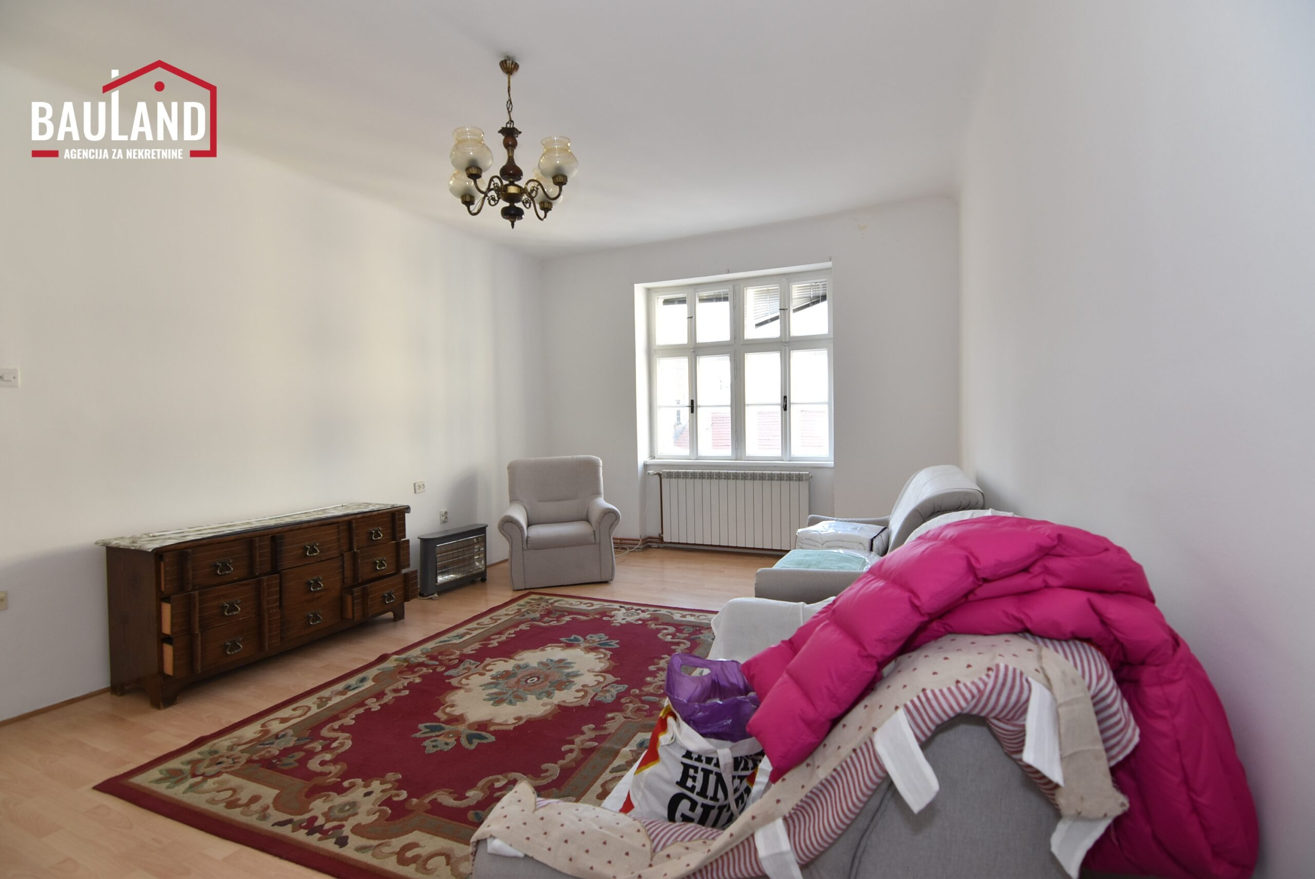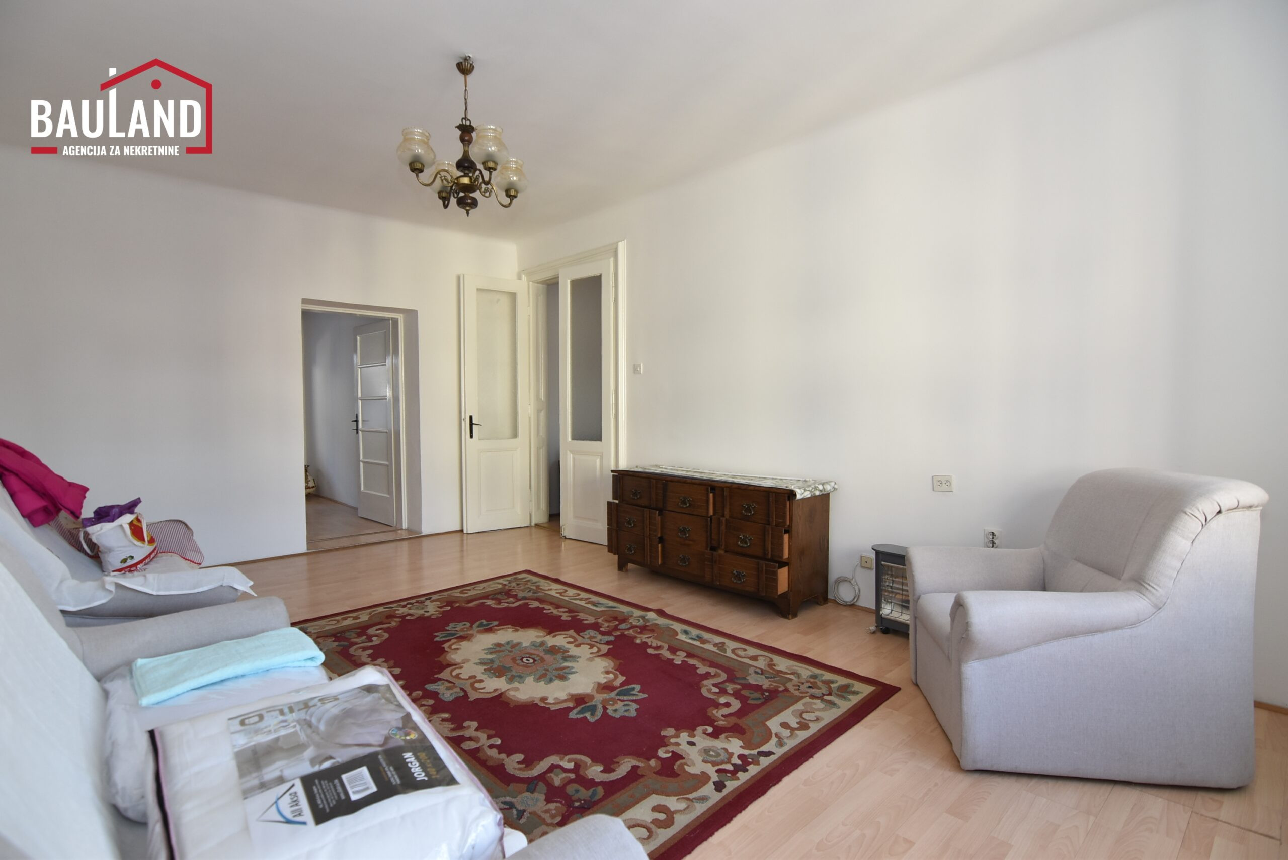 Trosoban stan sa dva balkon uknjižene kvadrature 86m2 koji se nalazi na trećem ujedno i zadnjem spratu stambene zgrade bez lifta u u ulici Vrazova, naselje Marijin Dvor, Općina Centar. Stvarna kvadratura stana je cca 110m2 jer su vlasnici pregrađivanjem jedne prostorije dobili dodatnu sobu i dodatne kvadrate. Na sva tri sprata u ulazu nalazi se po jedan stan tako da su svi stanovi odnosno vlasnici pregrađivanjem jedne prostorije dobili dodatnu kvadraturu u stanu.