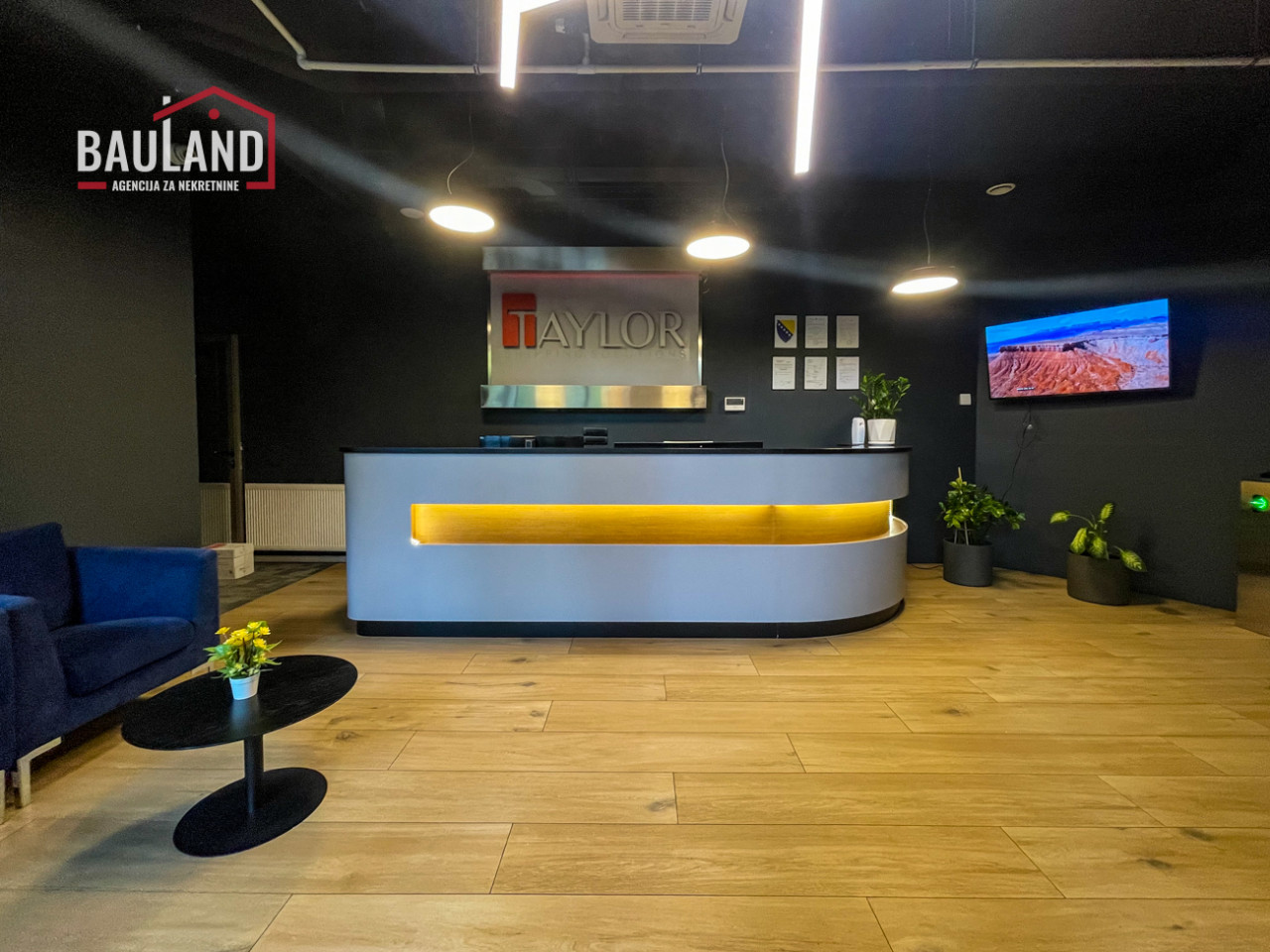 BUALAND iznajmljuje reprezentativan poslovni prostor površine 874m², smješten u prizemlju moderne stambeno-poslovne zgrade Dijamant na atraktivnoj lokaciji Otoka, ulica Džemala Bijedića. Prostor je osmišljen kao multifunkcionalna jedinica i idealan je za širok spektar djelatnosti – kancelarijsko poslovanje, IT kompanije, poliklinike, banke, edukacijski centri, prodajni saloni, maloprodaja, fitnes centri, ugostiteljstvo i slične komercijalne aktivnosti.