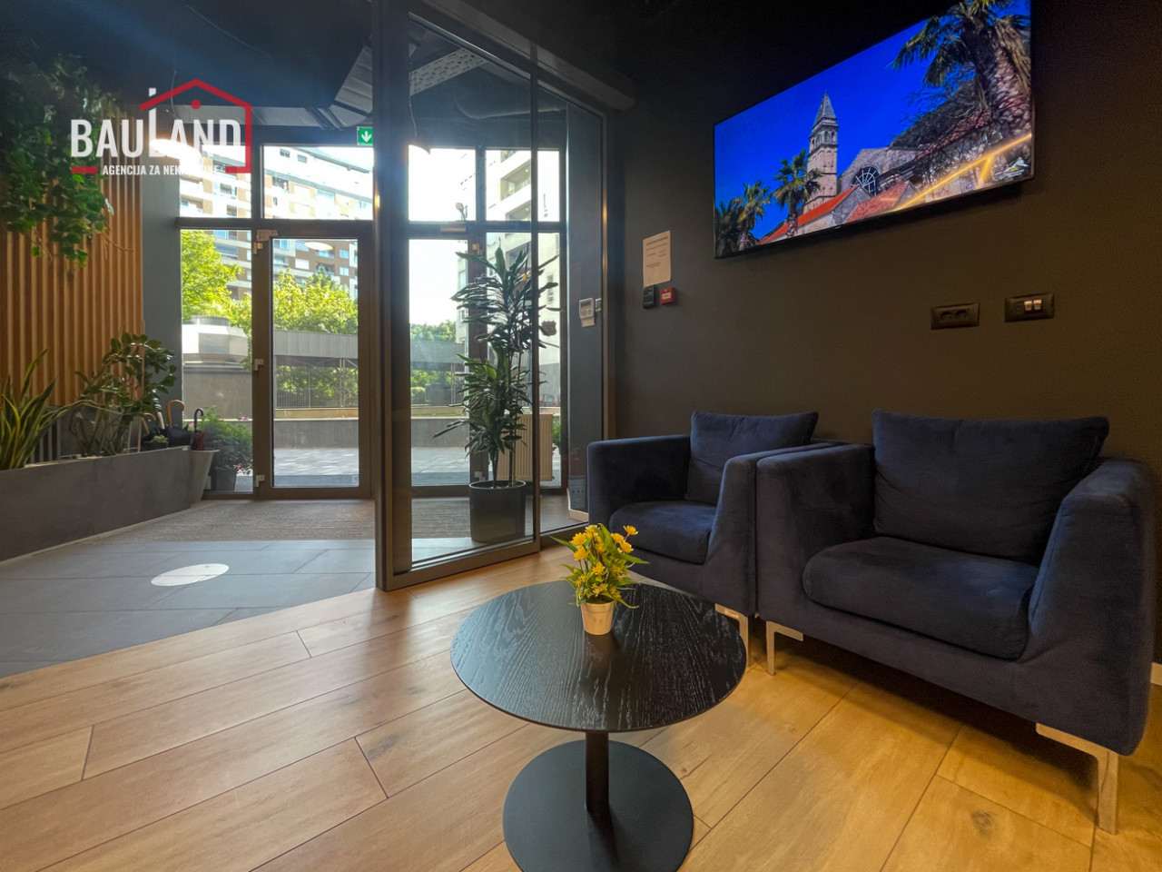 Budući zakupac ima mogućnost da preuzme prostor kompletno opremljen i funkcionalan – sa kancelarijskim namještajem, opremljenom kuhinjom, recepcijom, salom za sastanke i ostalim sadržajima – ili da prostor prilagodi u skladu sa vlastitim potrebama i poslovnim identitetom.
