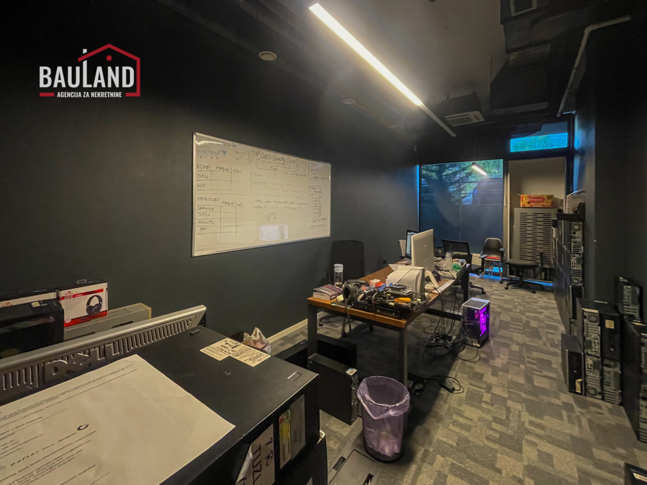 Prostor se sastoji od dva funkcionalna krila – desnog površine cca 720m² i lijevog površine cca 150m² – s mogućnošću zakupa svakog zasebno ili kao jedinstvene cjeline. Centralno je pozicionirana recepcija, uz više odvojenih kancelarijskih jedinica, konferencijsku salu, open space zone, arhivu, kuhinju i ukupno četiri toaleta.