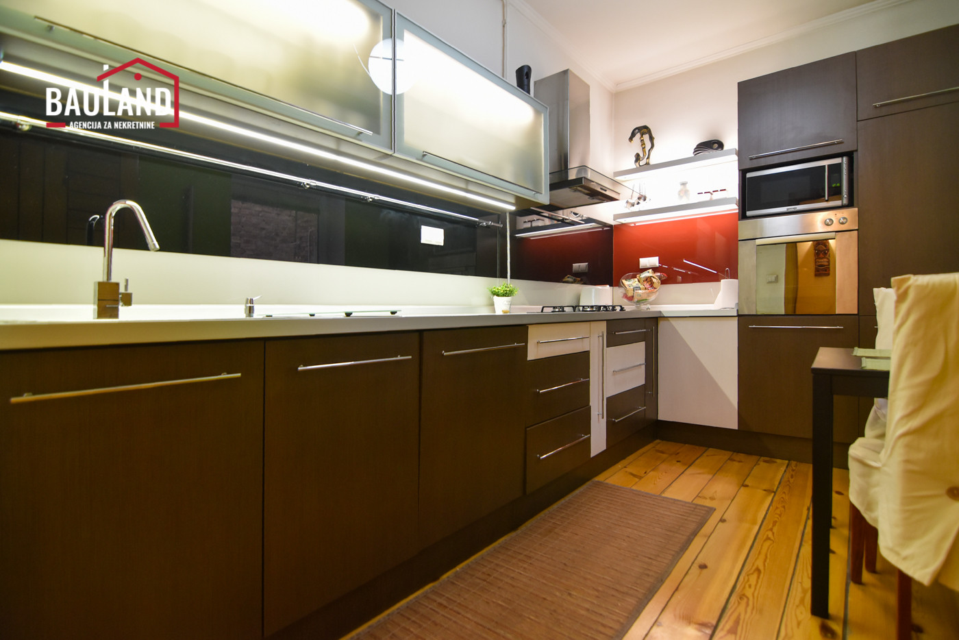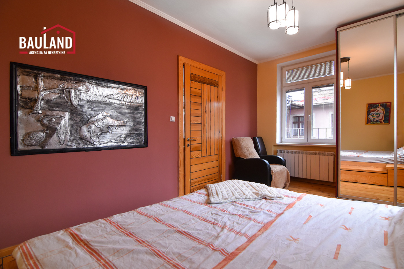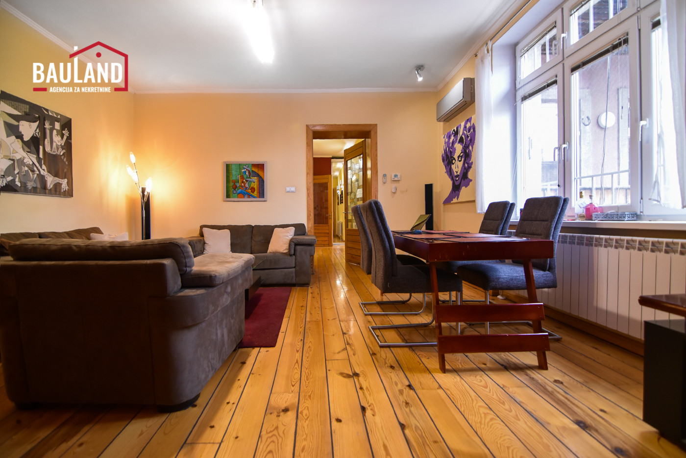 BAULAND iz svoje ponude izdvaja trosoban stan, površine 100 m², na četvrtom spratu stambene zgrade, na vrlo atraktivnoj lokaciji, u ulici Ferhadija, općina Stari Grad. Stan je izuzetno prostran, prozračan, s visokim stropom, smješten u zgradi austrougarske gradnje.