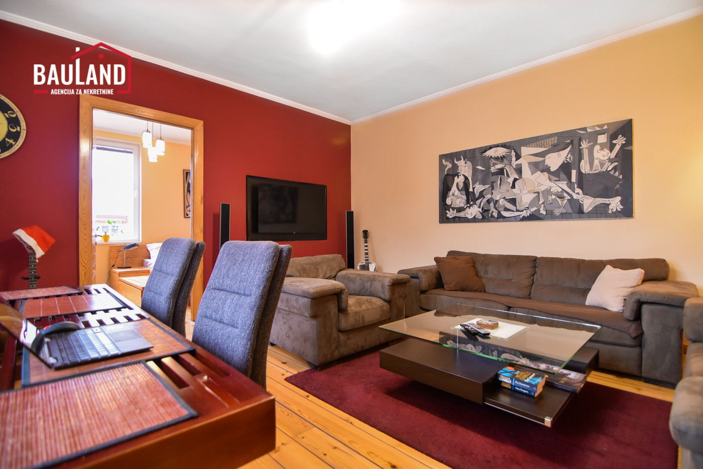Čine ga ulazni hodnik sa velikim ugradbenim plakarom, dnevni boravak, spavaća soba sa bračnim krevetom, gostinska soba, odvojena kuhinja, kupatilo, toalet i balkon.
