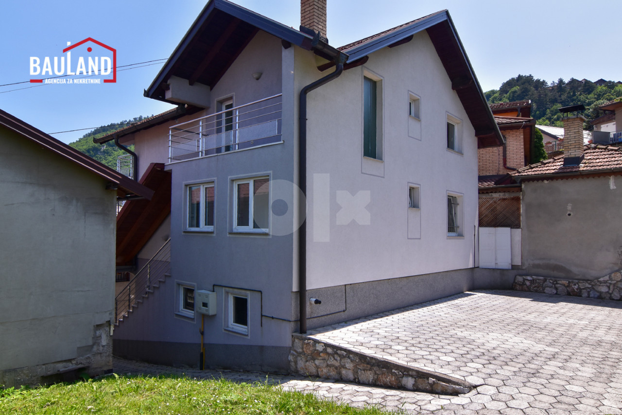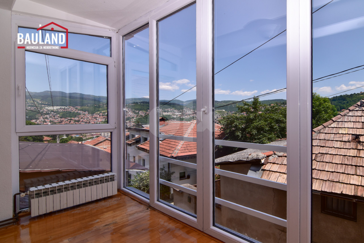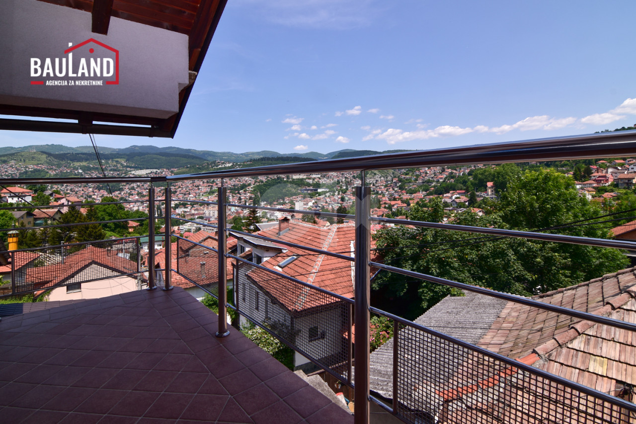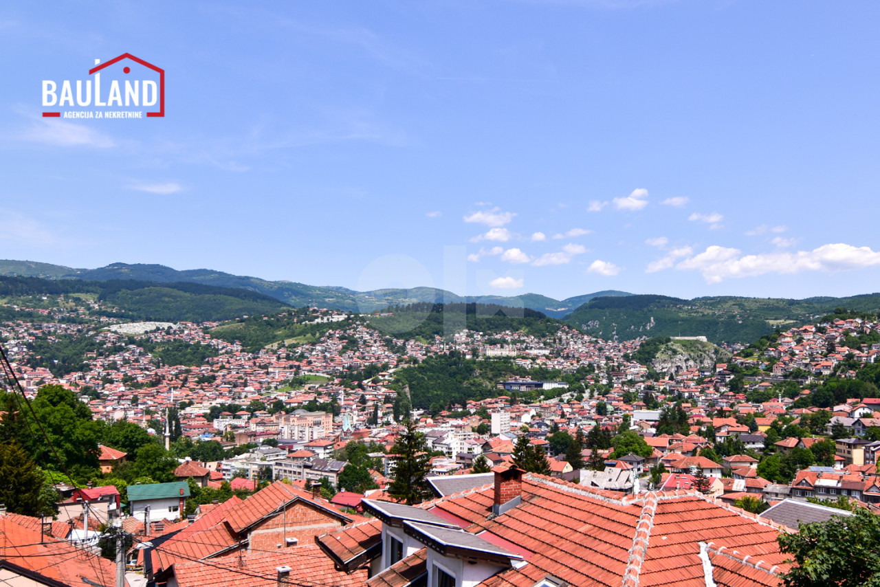 BAULAND izdaje trospratnu kuću površine od otprilike 200 m², s okućnicom od 800 m², smještenu u ulici Mujkanovića, Općina Stari Grad. Kuća se sastoji od tri etaže, s garažom u suterenu te prvim spratom i potkrovljem koji su povezani unutrašnjim stepeništem. Prizemlje obuhvaća prostrani dnevni boravak s velikim staklenim vratima, kuhinju, trpezariju i kuptilo. Potkrovlje se sastoji od tri spavaće sobe, kupatila i terase s predivnim pogledom na grad Sarajevo.
