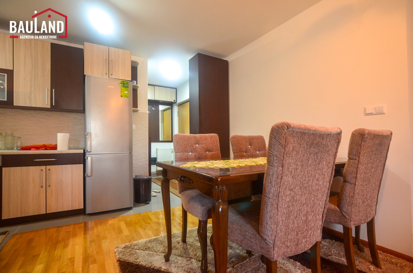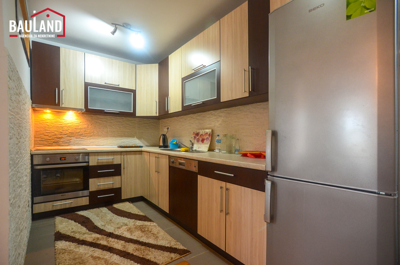 - Potpuno namješten – Stan je u potpunosti opremljen modernim namještajem i svim potrebnim uređajima, spreman za trenutnu useljivost.