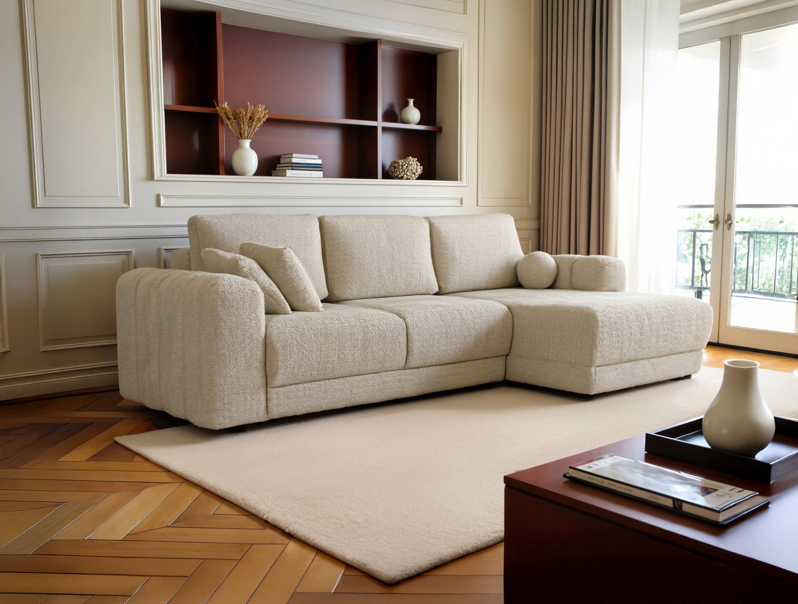 Kada težimo stvaranju luksuznog i elegantnog ambijenta u dnevnoj sobi, izbor pravog nameštaja postaje ključni element za postizanje tog cilja. Namještaj je srce svake sobe, a u luksuznoj dnevnoj sobi on postaje pravo umetničko djelo samo po sebi. Tako je nastala UG Noel – kombinacija vrhunskih materijala, besprijekornog dizajna i pažljivo odabranih detalja. Kupovinom ovog komada namještaja ne dobijate samo komfor, već i vrhunski kvalitet izrade koji osigurava da njegov izgled i udobnost izdrže test vremena. Kvalitet je postignut pažljivom izradom svakog detalja – od čvrstoće okvira, preko preciznih šavova, do izdržljivih jastuka koji zadržavaju svoj oblik i nakon dugotrajnog korišćenja. U ugaonu garnituru NOEL ugrađeno je džepičasto jezgro visine 10 cm u sedalne dijelove i cijelokupnu površinu za spavanje, što doprinosi maksimalnoj udobnosti i optimalnoj podršci tijelu. Zahvaljujući tome, garnitura ne samo da omogućava potpuno opuštanje, već i podstiče zajedničke trenutke i stvara idealan ambijent za druženje. Ergonomski dizajnirana, garnitura NOEL pruža savršenu potporu za leđa, vrat i ruke, osiguravajući da svaki trenutak odmora bude istinsko, revitalizujuće iskustvo.