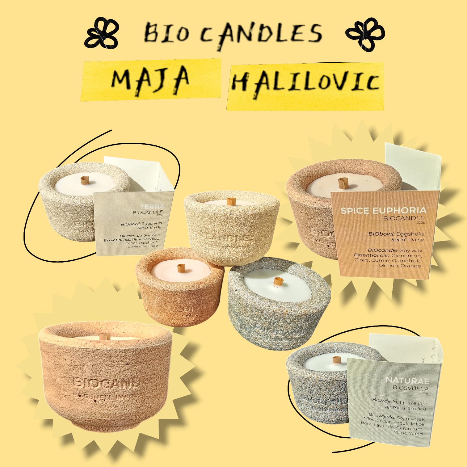 Ova inovativna kreacija je rezultat saradnje s Maja Halilović, međunarodno nagrađivanom bio dizajnerkom. Naše bio svijeće su idealan izbor za sve one koji žele unijeti prirodu u svoj dom na jedinstven i održiv način.
