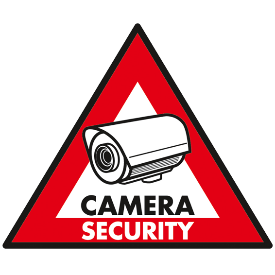 Set 5 naljepnica "Camera Security", materijal PVC, debljina naljepnice 0,25mm, ljepljiva strana: zadnja strana.