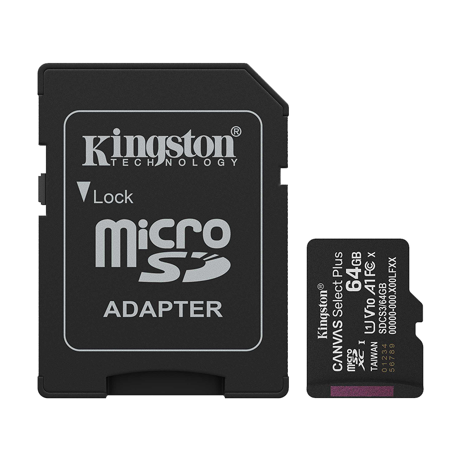 Micro SD card Kingston 64 GB SDCS3/64GB Class10 Canvas Select Plus SD adapter;100MBs Read,Class 10 UHS-I