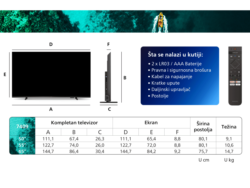 Philips 55"PUS7409 4K GooglePixel Precise Ultra HDDolby Atmos zvuk
