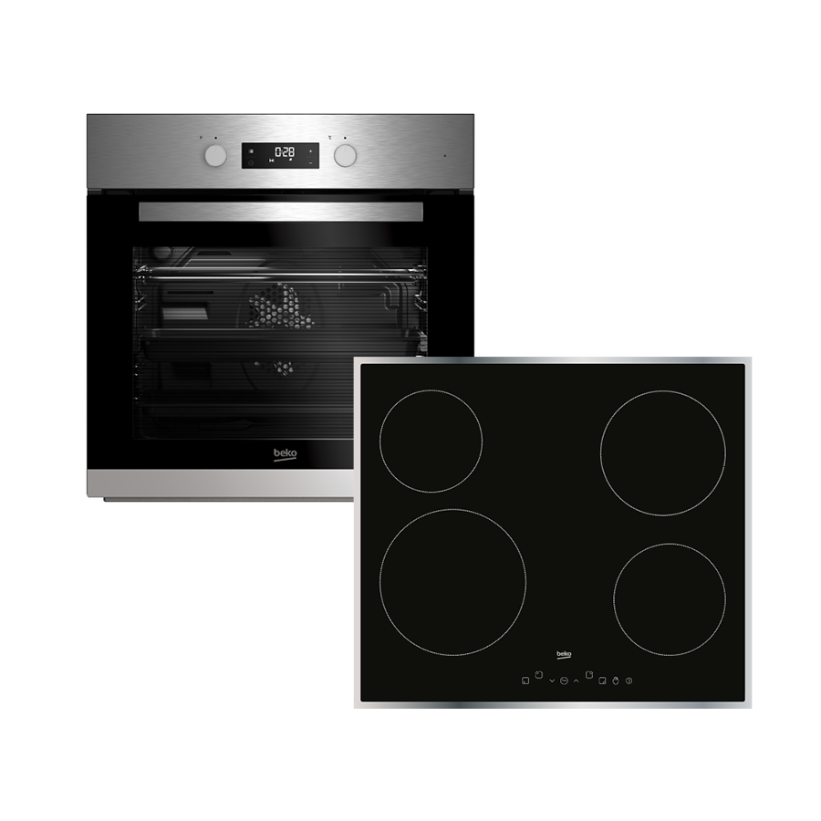 Beko ugradbeni set N6 BSM 22320 X sadrži staklokeramičku ploču HIC 64401-1X i pećnicu BIM 22301 X. Ploča ima snagu od 6800 W, elektronsku bravu za djecu i sigurnosne funkcije poput indikatora preostale topline i zaštite od prelijevanja. Dimenzije ploče su 5,5x58x51 cm. Pećnica ima elektronski programator, vrata od punog stakla, podršku za višedimenzionalno kuhanje i 71-litarsku zapreminu. Dodaci uključuju plehove, žičanu policu i bočne nosače. Dimenzije pećnice su 59,5x59,4x56,7 cm. Set pruža snažne performanse i sigurnosne funkcije, čineći ga praktičnim rješenjem za modernu kuhinju.