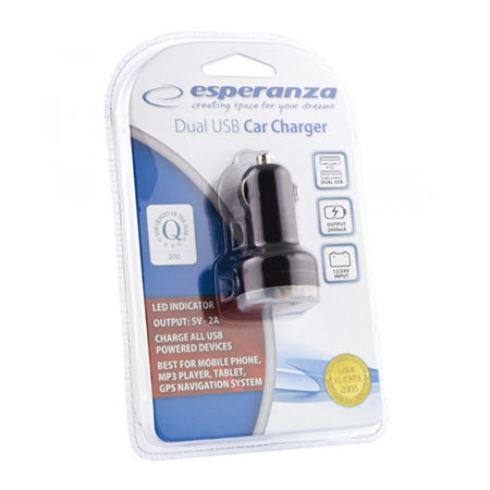 Auto Punjač ESPERANZA, Dual USB, In 12/24V, Out 5V 2.1A, EZ108