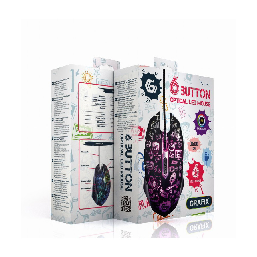 Miš GEMBIRD 6-button optical LED mouse, black, MUS-6B-GRAFIX-01, optical, USB