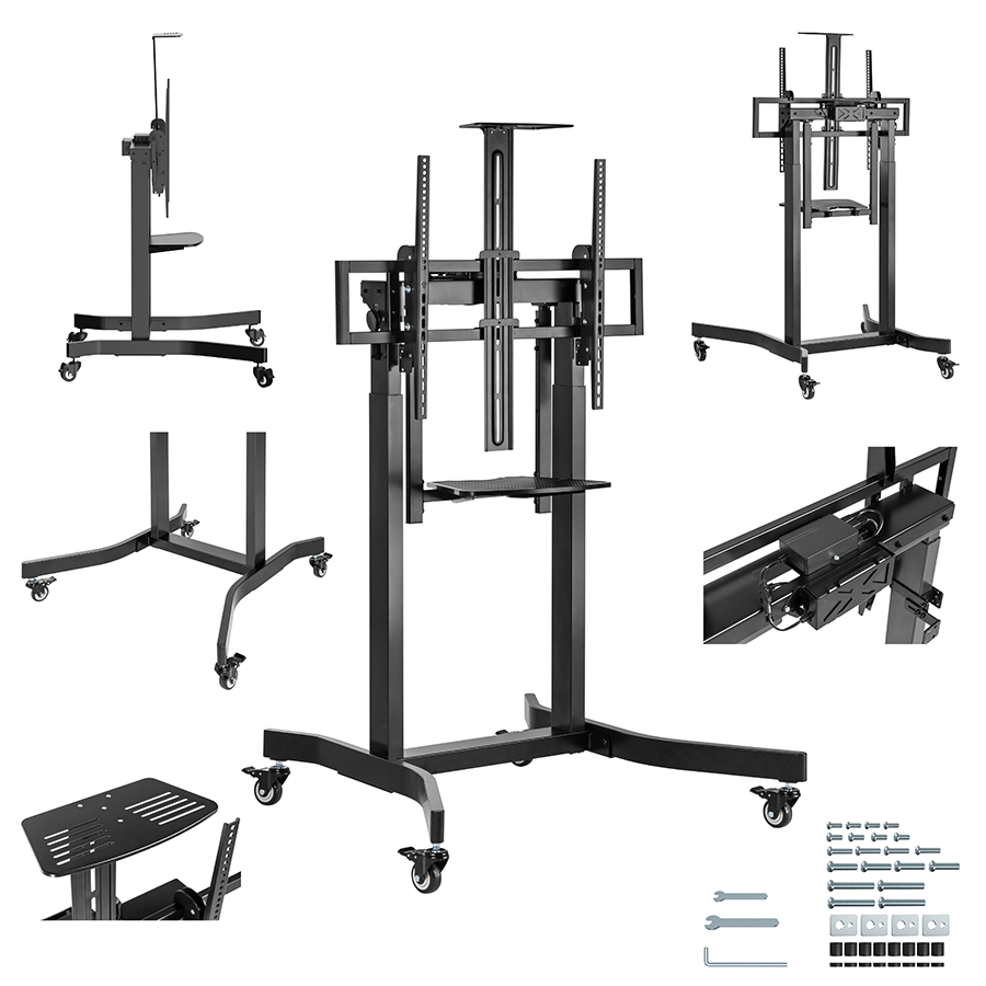 Nosač za TV na stalku motorizirani sa točkovima GEMBIRD TVS-100T-01, 55"-100"
