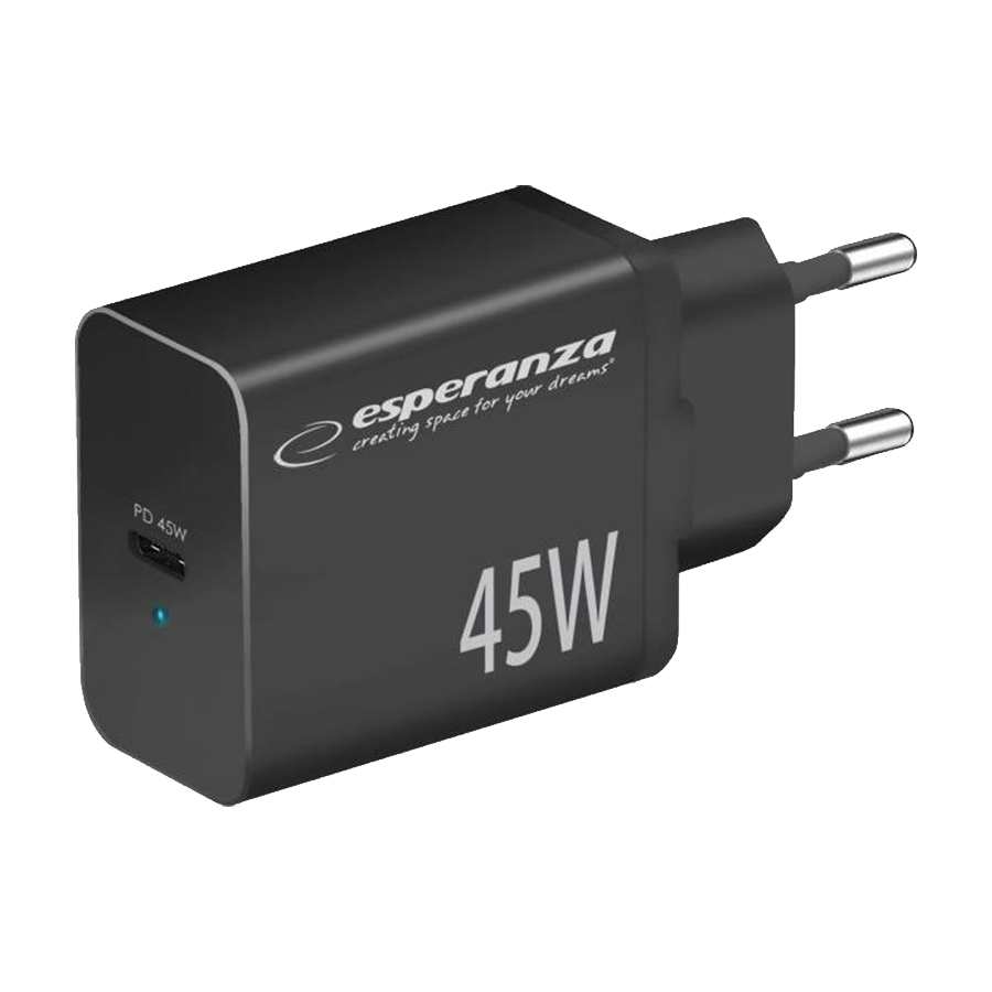 USB punjač Type-C ESPERANZA QUICK POWER CHARGER 45W USB-C PD 45W BLACK, EZC108K