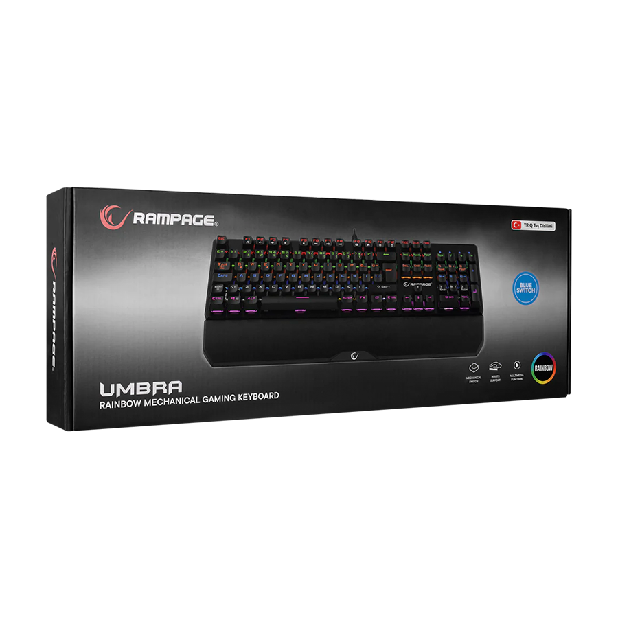 Tastatura gaming RAMPAGE KB-R86 UMBRA Black USB Rainbow Backlit Blue Switch US Layout Mechanical, 40384