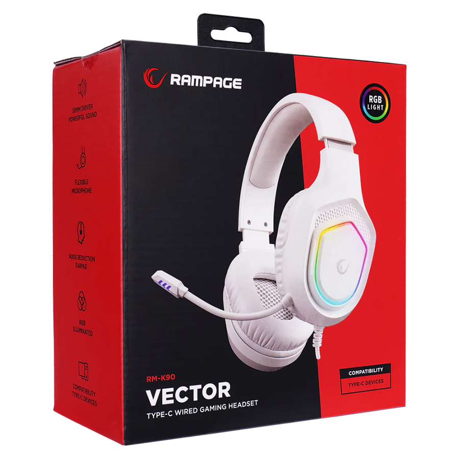 Slušalice sa mikrofonom gaming RAMPAGE RM-K90 VECTOR white, RGB LED, Type-C