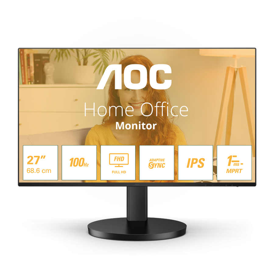 MONITOR AOC 27" 27B3HA2 IPS, 16:9, 1920x1080, 100Hz, 1ms, 250 cd/m2, 1300:1, VGA, HDMI, VESA, Ultra Narrow, Adaptive Sync, 2 W x 2, Black, VESA 3y
