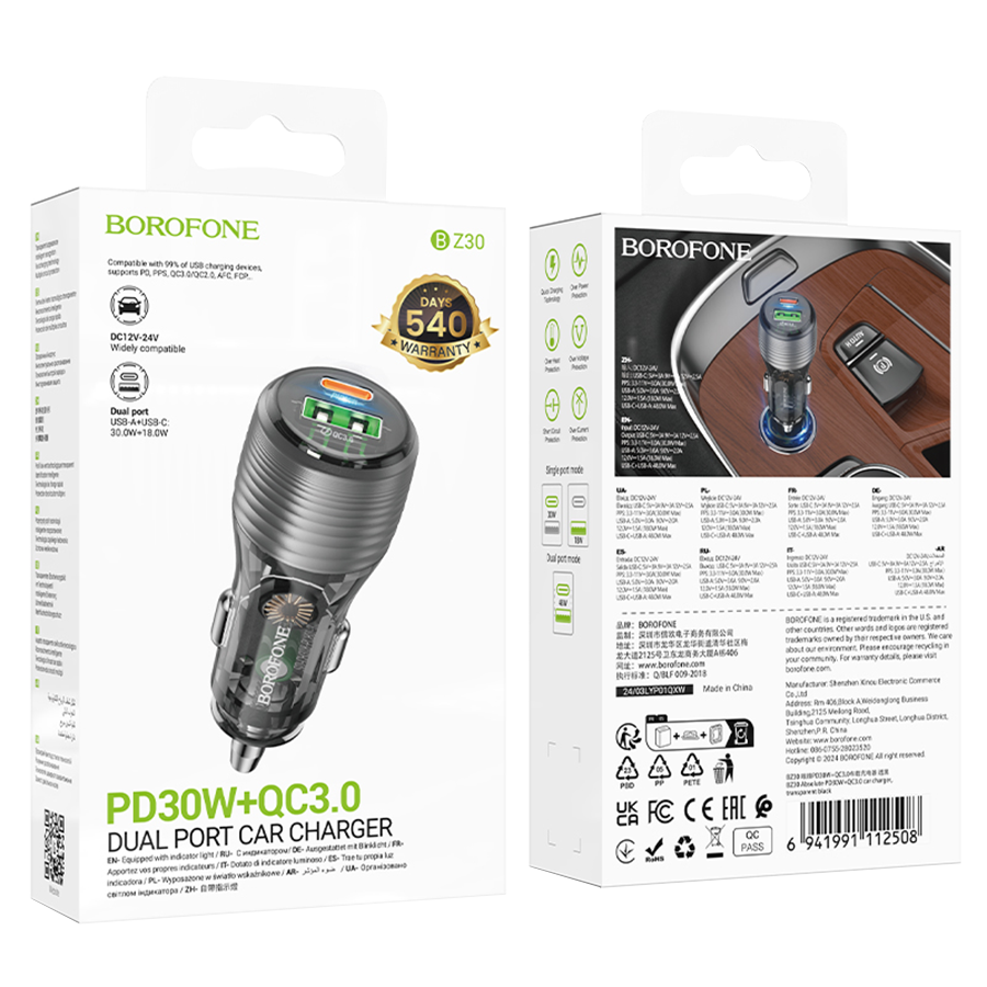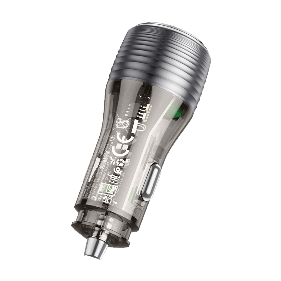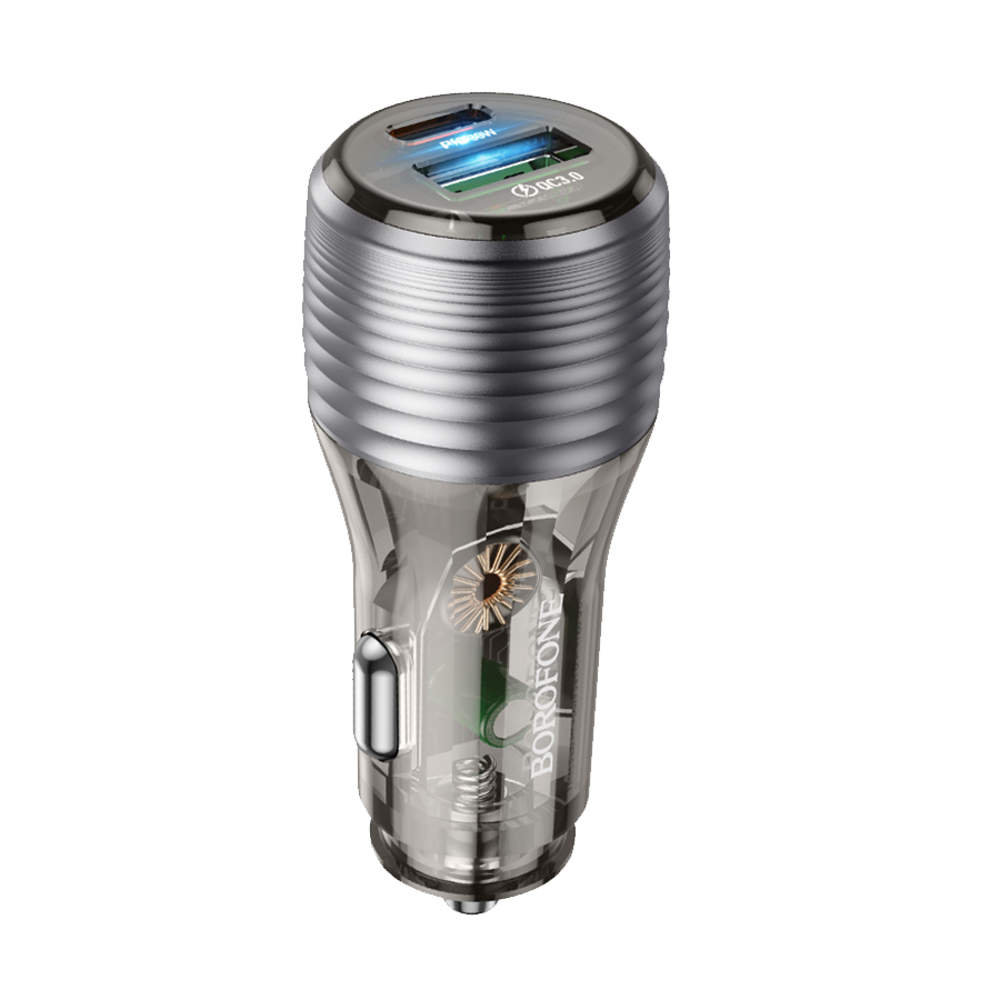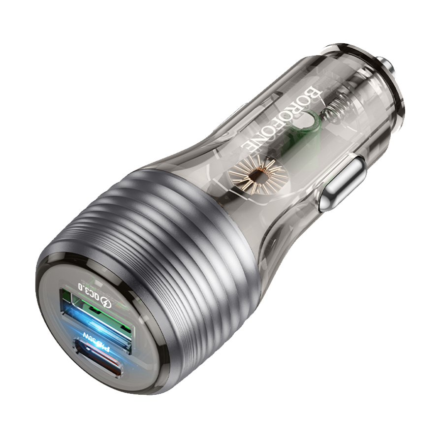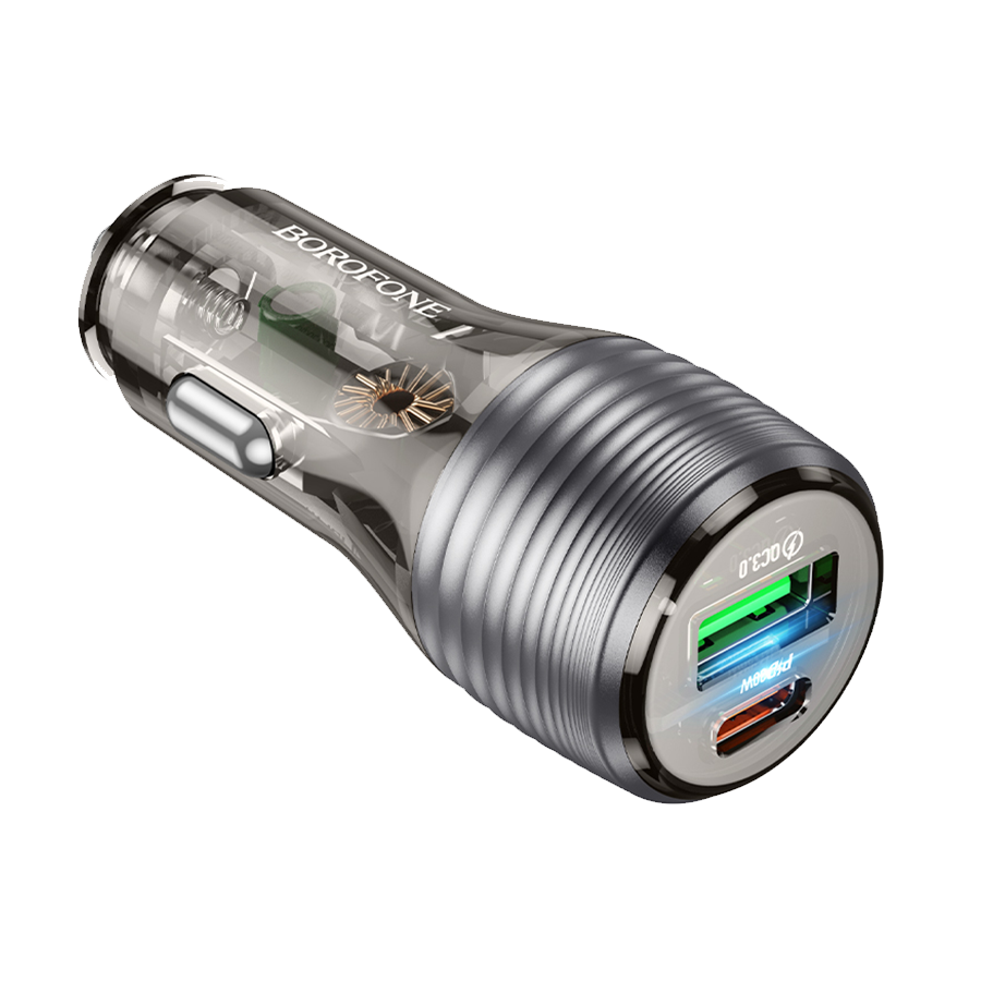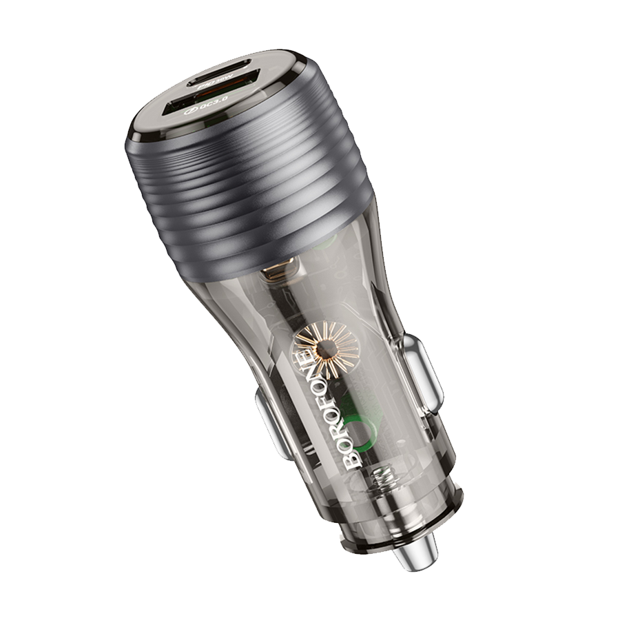 Auto Punjač sa kablom 1m Type-C to Type-C BOROFONE BZ30 Absolute PD30W+QC3.0 car charger set USB + Type-C, transparent black