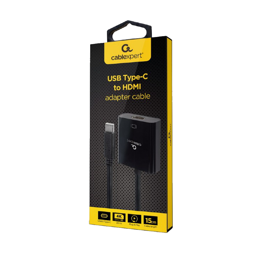 USB adapter Type-C to HDMI adapter 4K@30Hz, 15 cm, black, GEMBIRD, A-CM-HDMIF-03