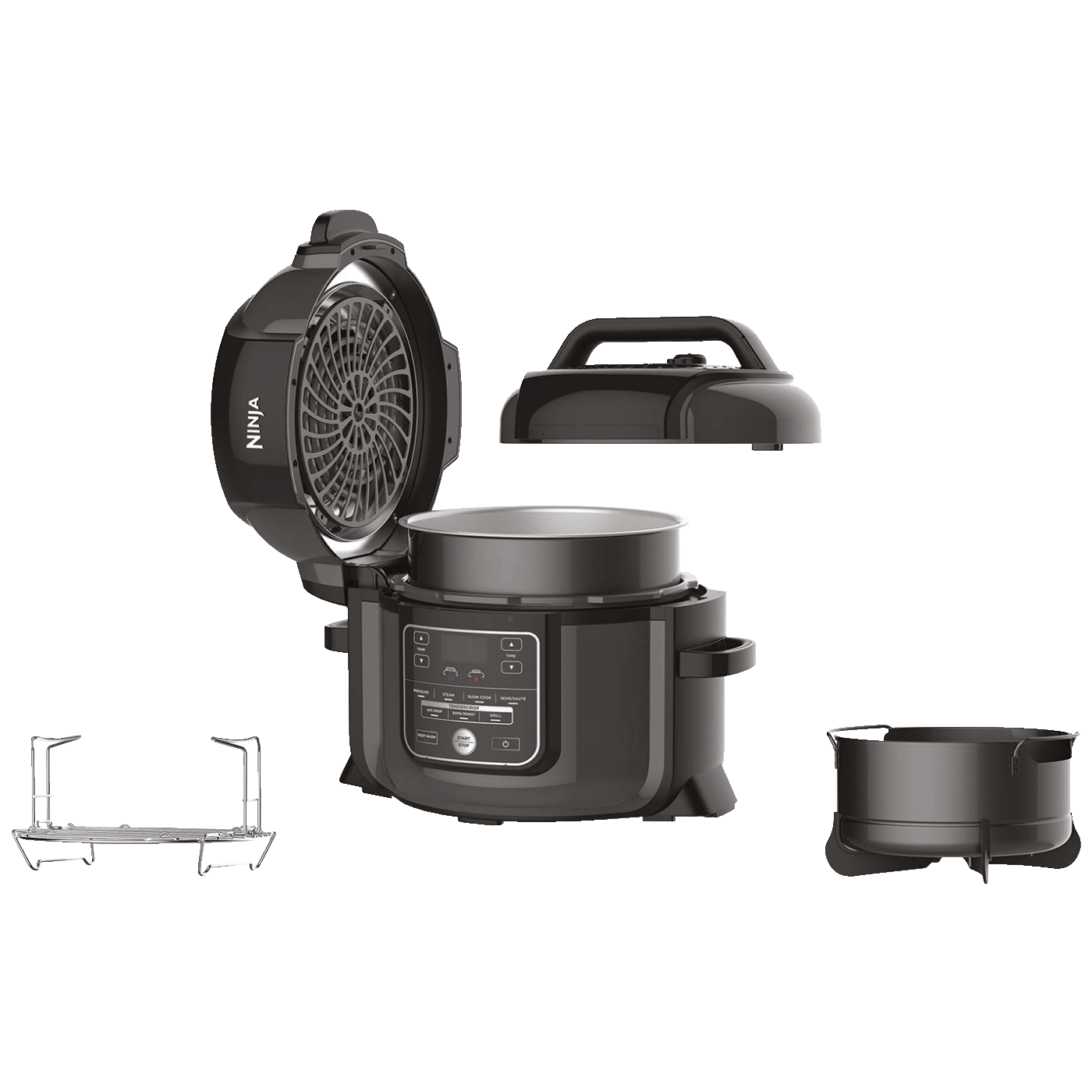 Višenamjensko kuhalo Ninja Foodi nudi sve u jednom loncu: kuhanje pod tlakom, prženje na zraku, sporo kuhanje, roštiljanje, pečenje/pečenje, prženje/pirjanje i kuhanje na pari. To za vas znači beskrajne mogućnosti.