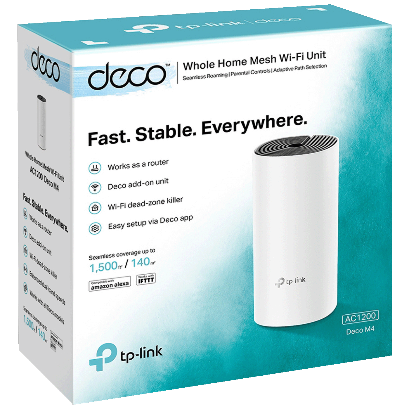 Deco M4 pruža brze i stabilne veze sa brzinama do 1167 Mbps i radi sa glavnim provajderom internetskih usluga (ISP) i modemom.