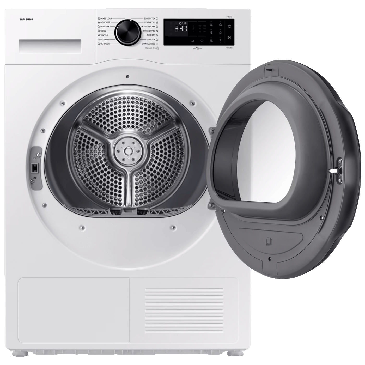 AI Energy Mode u okviru SmartThings aplikacije omogućava optimizaciju potrošnje energije prema navikama korisnika, a sušilica automatski prilagođava vrijeme i način rada prema količini i vrsti rublja. Uz praktične funkcije kao što su odgođeni start, senzor vlage i prikaz preostalog vremena, svakodnevno sušenje postaje jednostavnije i ekonomičnije.