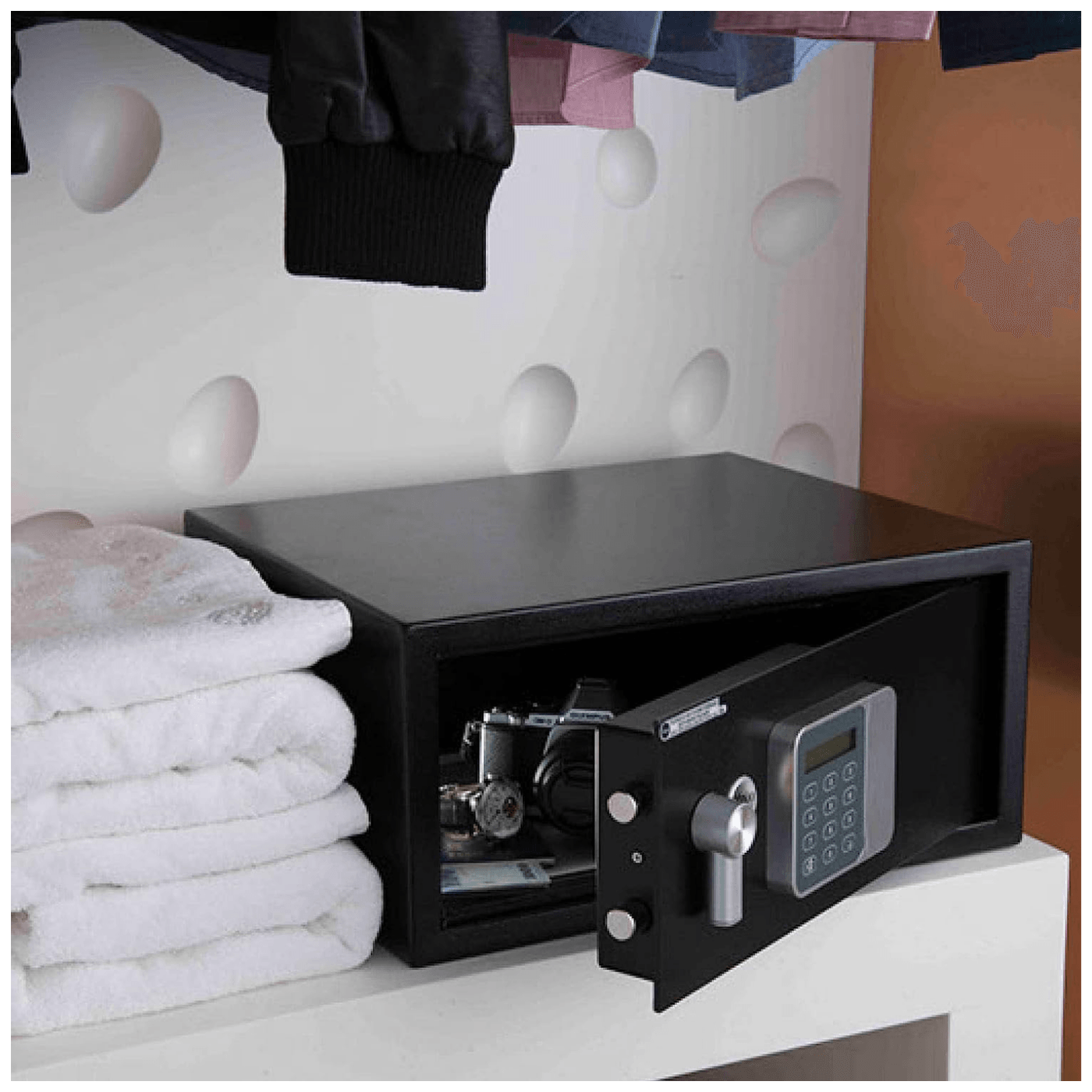 Vaši gosti mogu čuvati svoje dragocjenosti na sigurnom i uživati u boravku znajući da su dobro zaštićeni u svakom trenutku. Uz unutrašnjost sefa prekrivenu tepihom, osjetljivi predmeti ostaju u najboljem stanju.