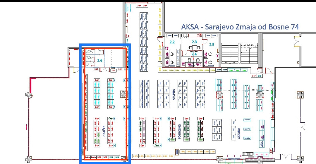 Socijalno,preko puta Robot centra.Posjeduje teretni lift i sporedni ulaz