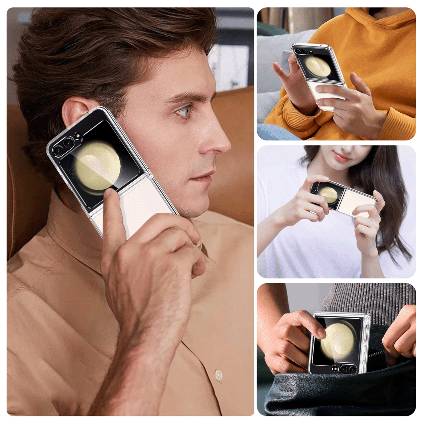 Ova prozirna, izdržljiva futrola je posebno dizajnirana za Galaxy Z Flip4 5G, pružajući zaštitu od udaraca bez zaklanjanja originalnog dizajna telefona. Materijal PC čini je čvrstom, a istovremeno dovoljno laganom za svakodnevno korištenje.